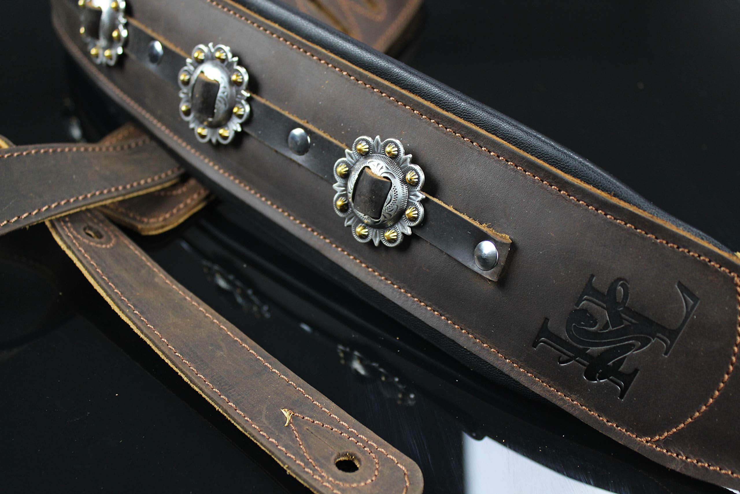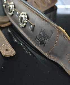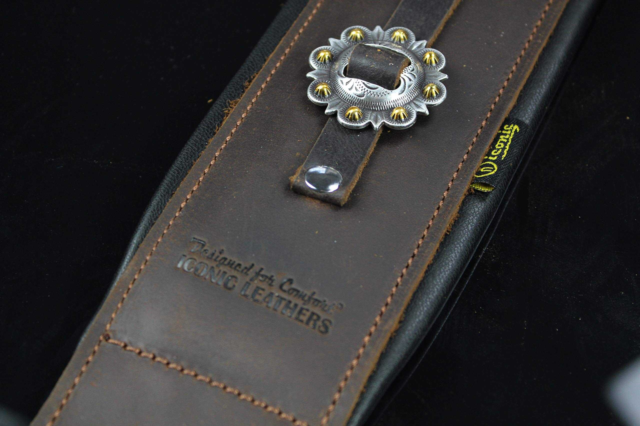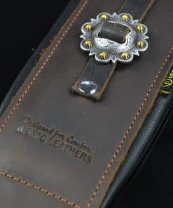 Edición Limitada del modelo IL-5 inmensamente popular, en color marrón, con los conchos más elegantes que pudieron encontrar. Cuenta con el sistema de comodidad acolchada dual de Iconic Leathers. La parte superior de cuero marrón es la mejor que ofrecen y, debido a la calidad, solo se verá mejor con el tiempo. Sin acabado brillante artificial, mostrará la mayoría de los arañazos y se verá genial al hacerlo. El ancho de 3.25″ distribuye el peso de la guitarra a lo largo del hombro y las dos capas de acolchado alivian el dolor de las guitarras pesadas y los conciertos largos. Parte superior de cuero negro de grano superior, elegancia de concho occidental hecha a mano y un diseño que funciona con los sistemas de bloqueo de correa, si es necesario. Se extiende de 43″ a 54″.
