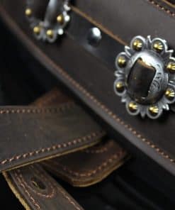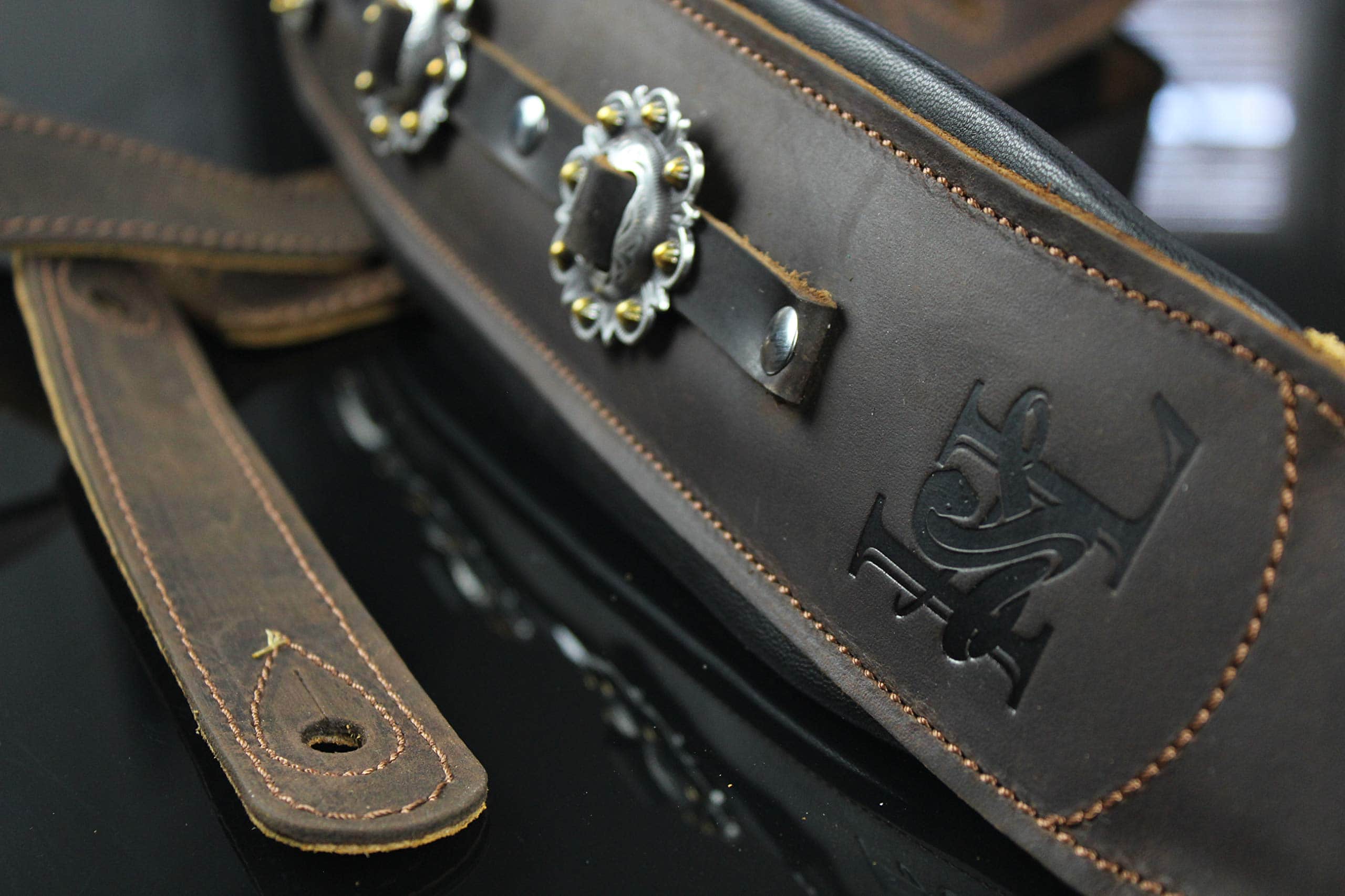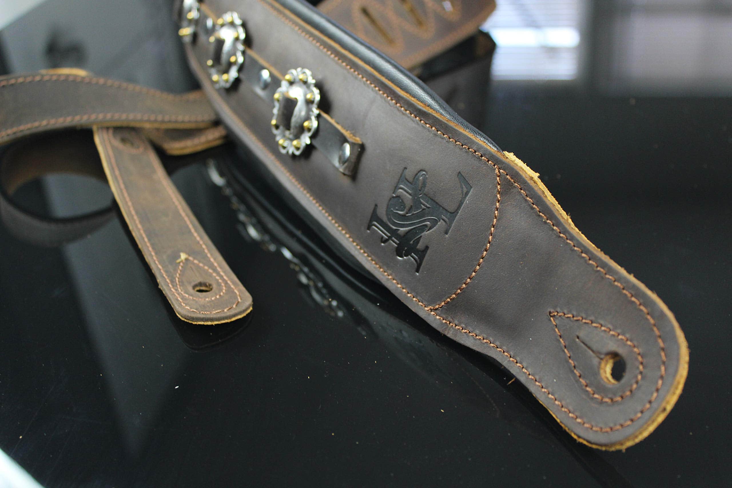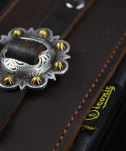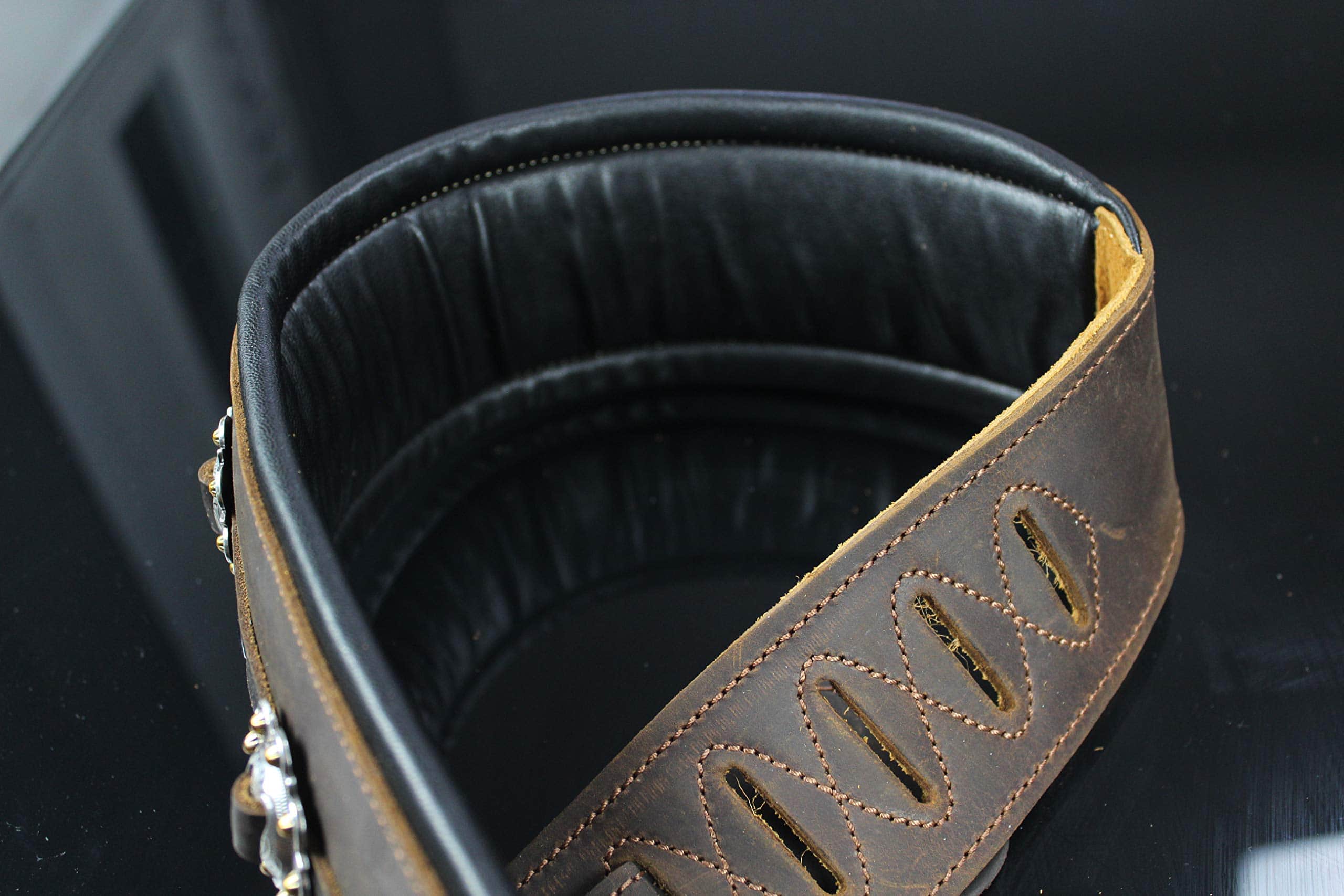 Edición Limitada del modelo IL-5 inmensamente popular, en color marrón, con los conchos más elegantes que pudieron encontrar. Cuenta con el sistema de comodidad acolchada dual de Iconic Leathers. La parte superior de cuero marrón es la mejor que ofrecen y, debido a la calidad, solo se verá mejor con el tiempo. Sin acabado brillante artificial, mostrará la mayoría de los arañazos y se verá genial al hacerlo. El ancho de 3.25″ distribuye el peso de la guitarra a lo largo del hombro y las dos capas de acolchado alivian el dolor de las guitarras pesadas y los conciertos largos. Parte superior de cuero negro de grano superior, elegancia de concho occidental hecha a mano y un diseño que funciona con los sistemas de bloqueo de correa, si es necesario. Se extiende de 43″ a 54″.