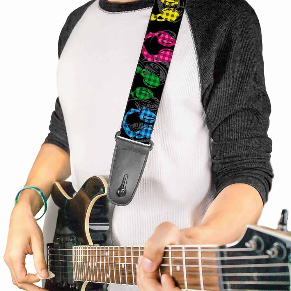 1. Correa para guitarra Buckle-Down – Auriculares Buffalo Plaid Negro/Neón – 2″ Ancho – 29-54″ Longitud