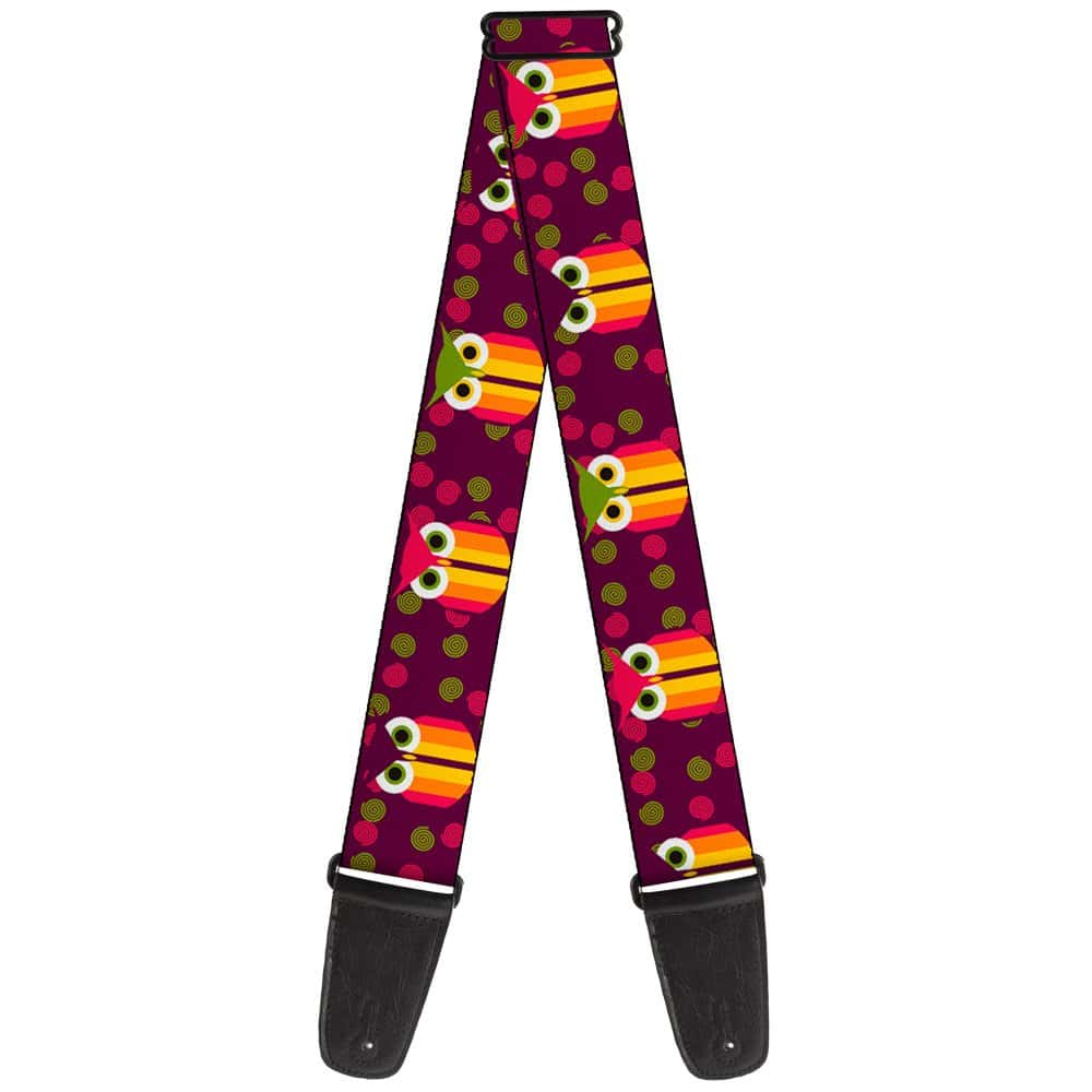 Correa para guitarra Buckle-Down – Búhos Rayas con Remolinos Morado – 2″ de Ancho – Largo de 29-54″