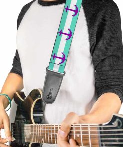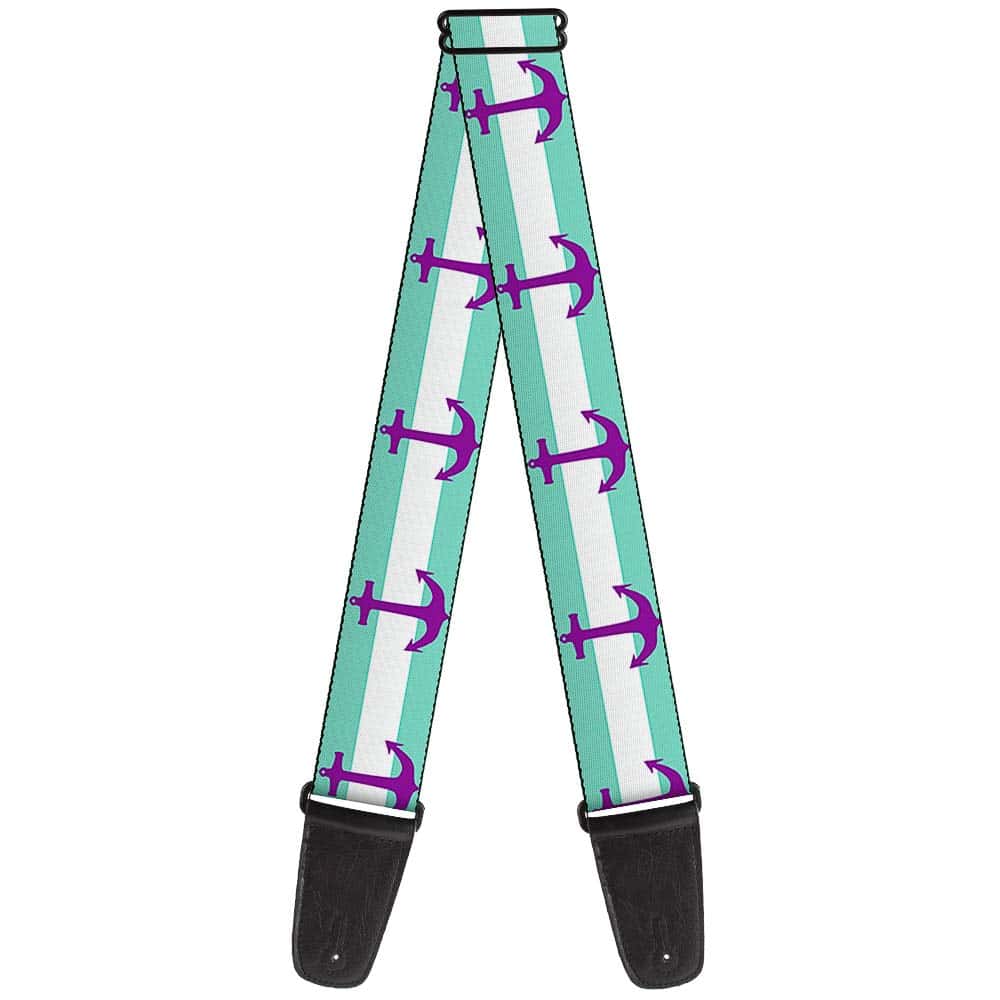 Correa para guitarra Buckle-Down – Ancla/Raya Teal/Blanco/Morado – 2″ de ancho – 29-54″ de largo