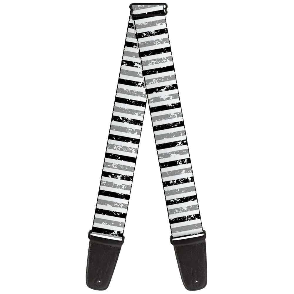 1. Correa para guitarra Buckle-Down – Rayas verticales blanco/negro/gris – 2″ de ancho – Longitud de 29-54″