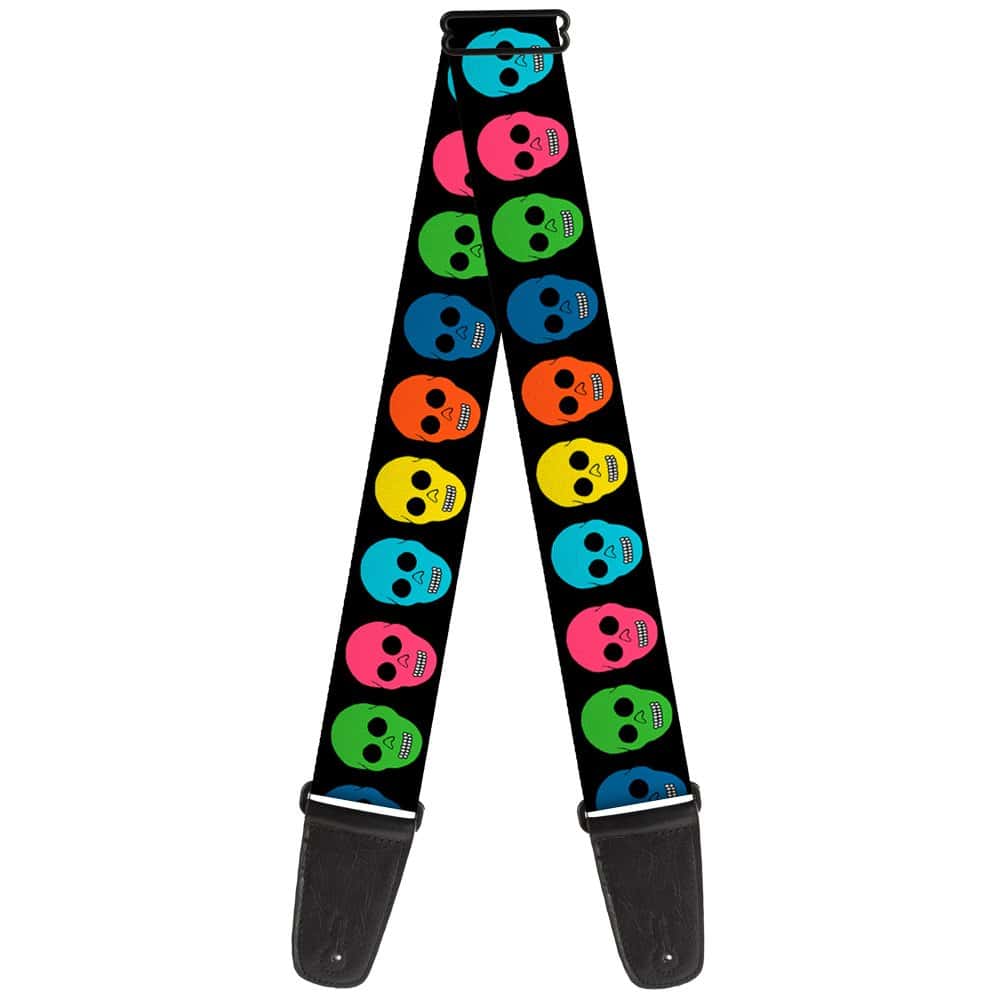 Correa para Guitarra Calaveras Negro Multi Color 2 Pulgadas