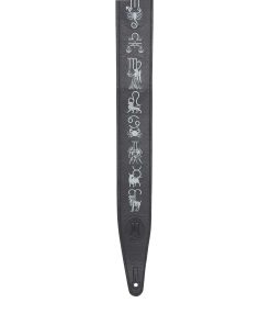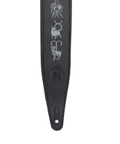 Correa de guitarra de cuero para ropa de 2.5″ negro bordado con signos del zodíaco