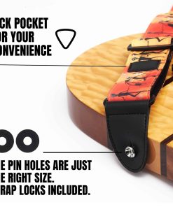 Correa acolchada de algodón suave ajustable con bloqueo y accesorios para guitarra, bajo, ukelele – Con portapúas