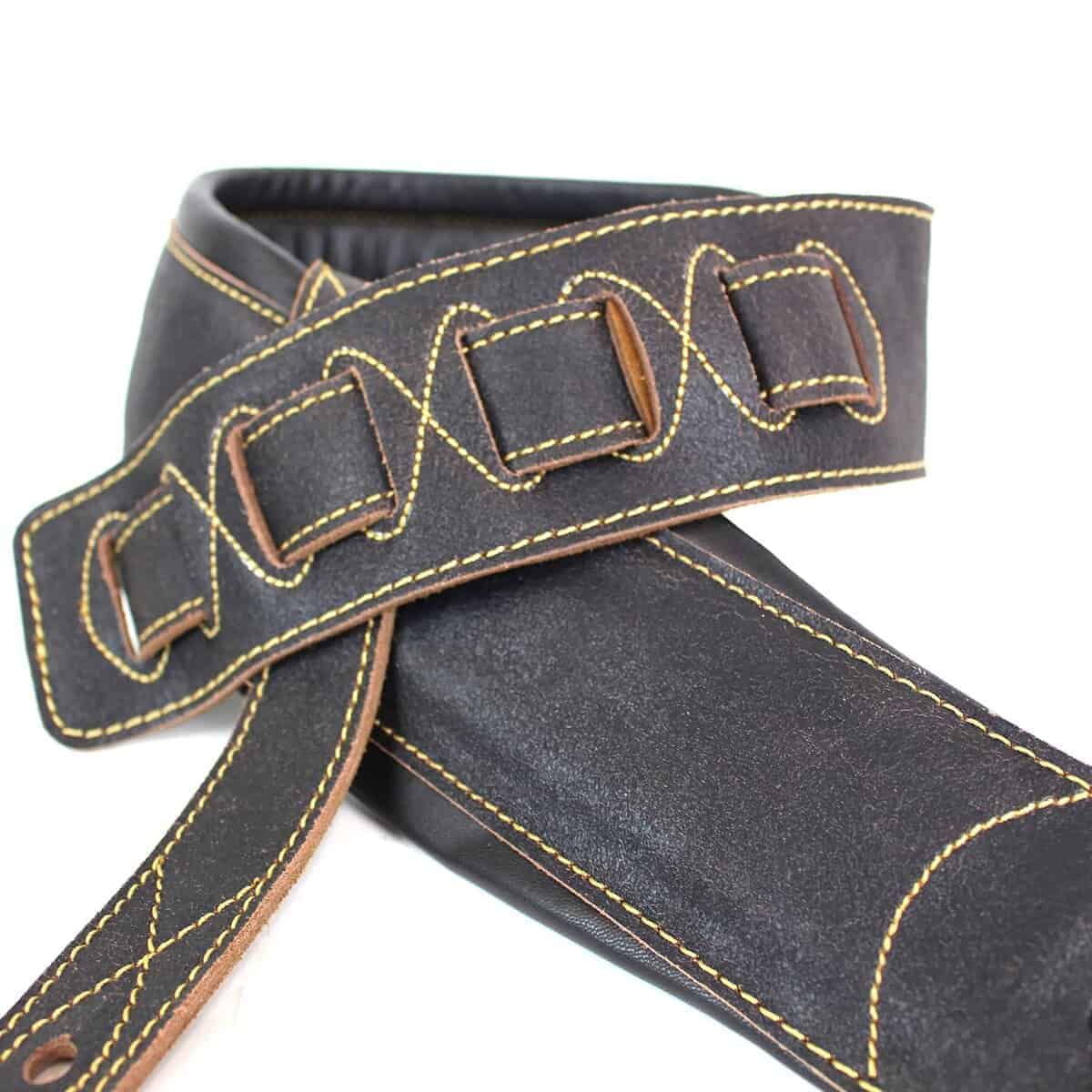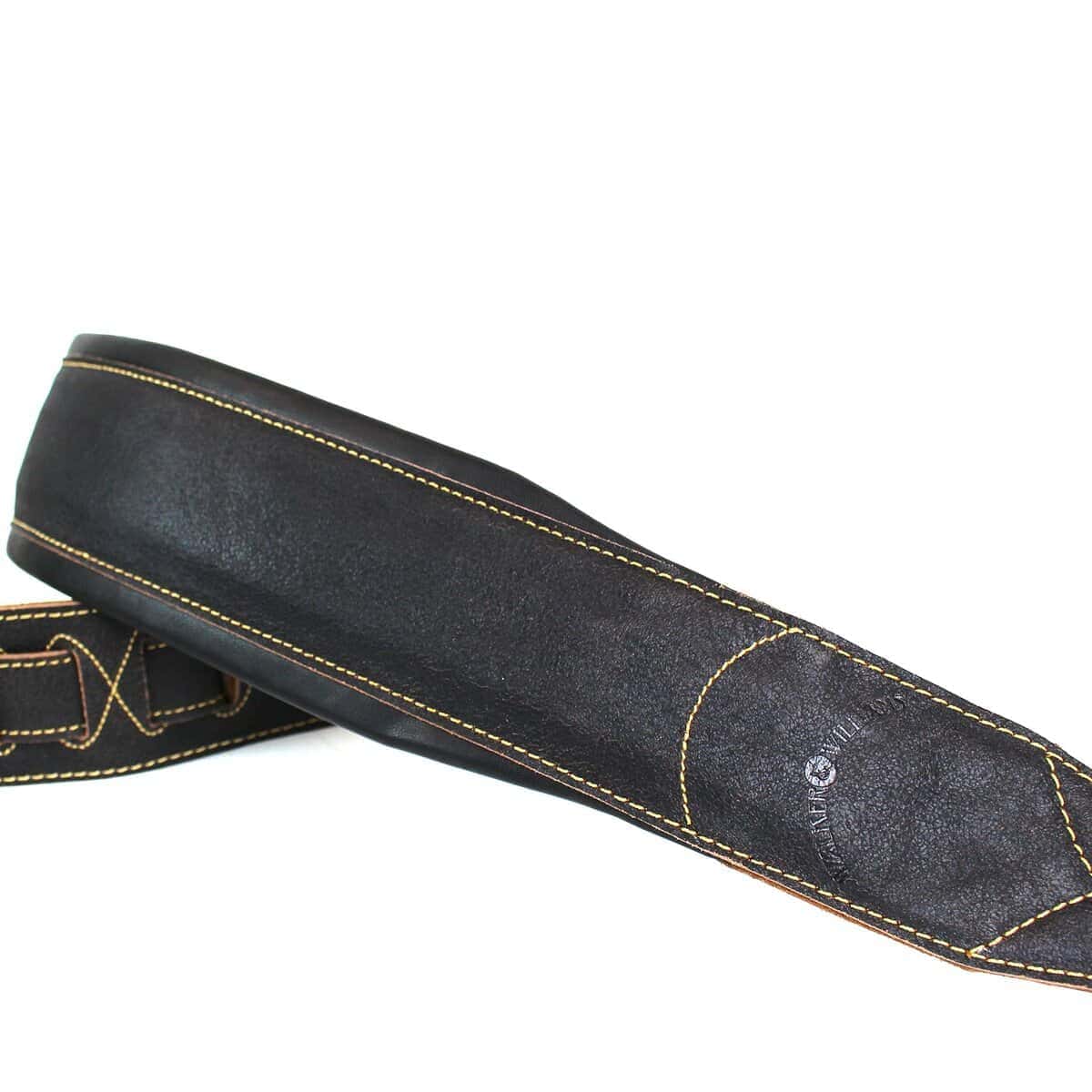Este es uno de nuestros modelos de la serie W&W C-22 de doble acolchado. Nuestras correas de gamuza de gama alta 100% de cuero. El acabado negro desgastado es sutil y robusto, lo que le da a este modelo un aspecto de cazadora bomber. Es ultra cómodo para todos los modelos y marcas de guitarras o bajos, especialmente los pesados. Garantía de satisfacción 100% de W&W
