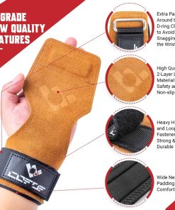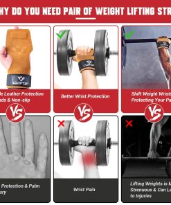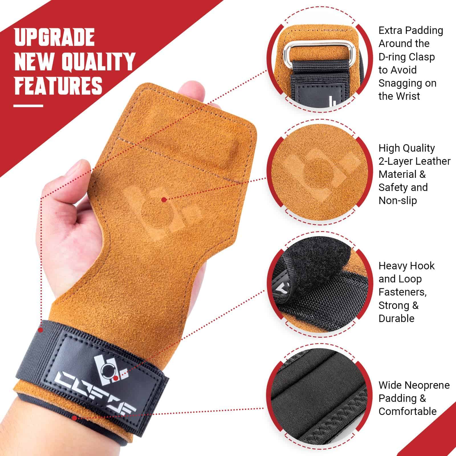 1. Correa para levantamiento de pesas actualizada: Nuestras correas de levantamiento de peso están hechas de cuero suave de doble capa que es de alta calidad y está diseñado ergonómicamente para adaptarse a sus manos y proporcionar un mejor agarre. Agregar almohadilla adicional alrededor del cierre de anilla en forma de D de metal evita que su muñeca se apriete y se sienta dolorosa. La correa de levantamiento de pesas con cierre de gancho y cierre de alta densidad se puede usar fácilmente en la muñeca, y ponerse y quitarse libremente por sí mismo. La almohadilla de neopreno ensanchada te hace sentir cómodo.