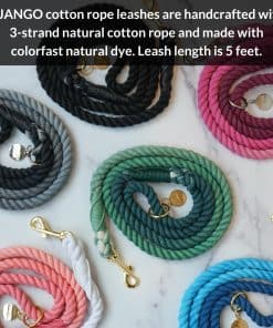 DJANGO Correa para Perro de Cuerda de Algodón | Correa de 5 pies Ombre para Perros Pequeños, Medianos y Grandes con Colores Personalizados, Extremos Reforzados y Hermoso Hardware en Oro y Plata (Ombre Azul Pacífico). ¿Quieres que tú y tu perro sean los más elegantes en la acera Esta correa de cuerda de algodón trenzado de 5 pies, hecha a mano y teñida a mano, es la elección perfecta. Crafted from soft and flexible 3-strand natural cotton rope, the rope leashes are hand-spliced and the ends whipped, resulting in incredibly strong yet effortlessly chic and comfortable dog leads. Versatile enough for small, medium, and large dogs, this leash features a 0.6-inch diameter rope, hand-spliced ends for added durability, and high-quality gold and silver hardware. Customized with DJANGO s beautiful ombre Pacific Blue design, this leash is sure to turn heads. Choose from a variety of custom ombre and solid colors to match your dog s style. Incluye un gancho giratorio de aleación de zinc dorado y un anillo de O para sujetar bolsas de excrementos. Apto para perros de todos los tamaños, el diámetro de la cuerda de 0.6 pulgadas y el hardware duradero hacen que esta correa sea resistente pero liviana. Esta correa para perro de 5 pies, con su diseño único y su construcción de alta calidad, es la combinación perfecta de estilo, comodidad y durabilidad. ¡Completa tu conjunto con los accesorios para caminar de DJANGO y lleva el estilo de tu perro al siguiente nivel!