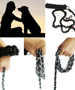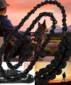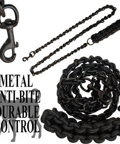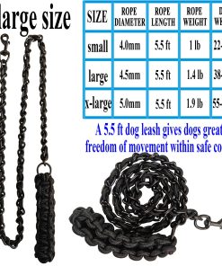 La correa para perros está compuesta por una cadena sólida cromada y una cuerda de nylon entrelazadas. La brillante cadena de metal y la cuerda negra le dan un aspecto genial y llamativo. ¡Ayuda a que tú y tu perro destaquen al aire libre o en la arena! Esta correa para perros resistente es especialmente adecuada para perros grandes como doberman, boxers, pastores alemanes, huskies, labradores, entre otros. ¡Agrega nuestra correa para perros pesada a tu carrito, si tiene algún problema o si no te gusta en absoluto, garantizamos el cambio o la devolución al 100 por ciento!