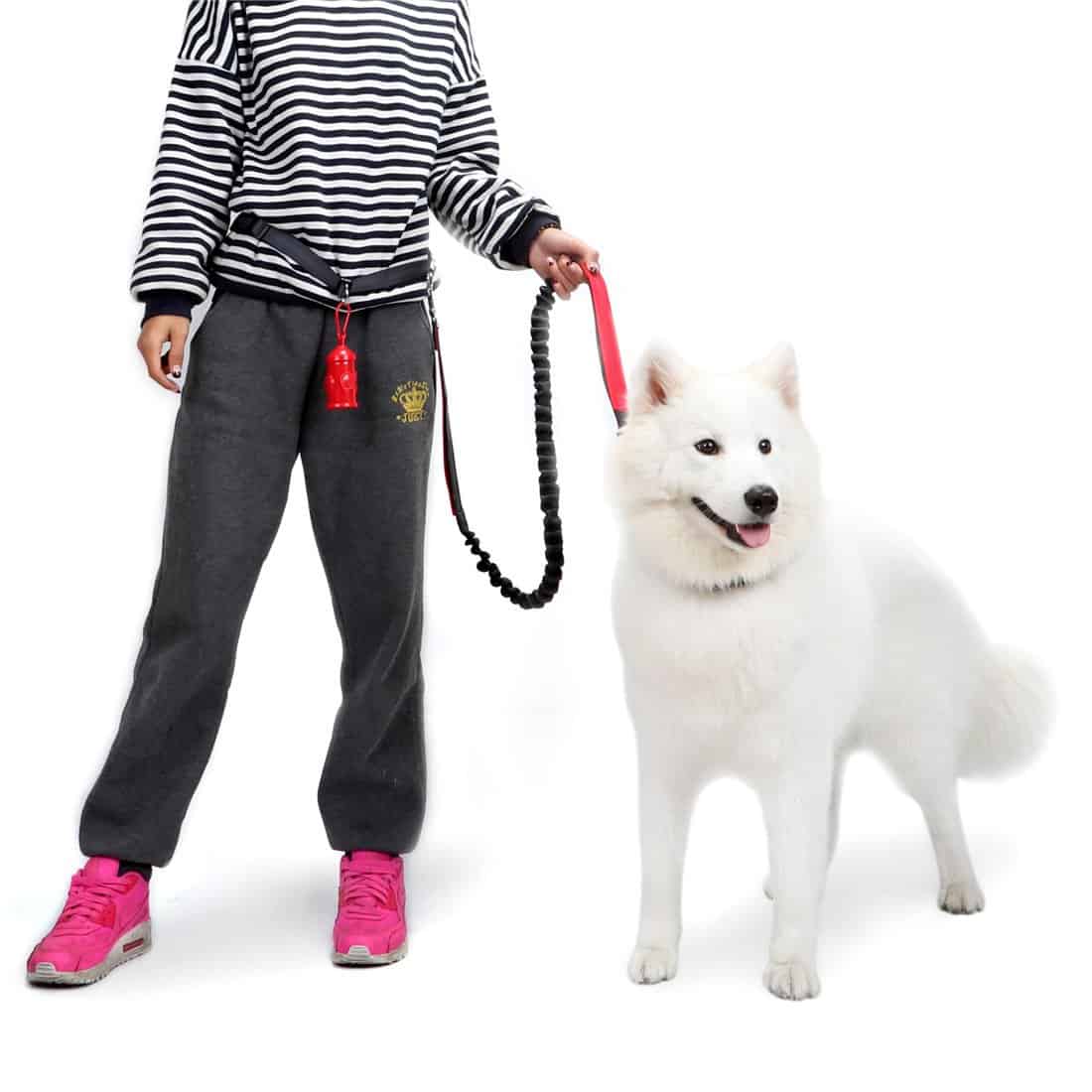 1. Diseño manos libres ajustable: Usar en la cintura te libera las manos mientras controlas al perro, puedes usar tu teléfono libremente o manejar el carrito sin sentirte restringido por los movimientos de tu perro.
