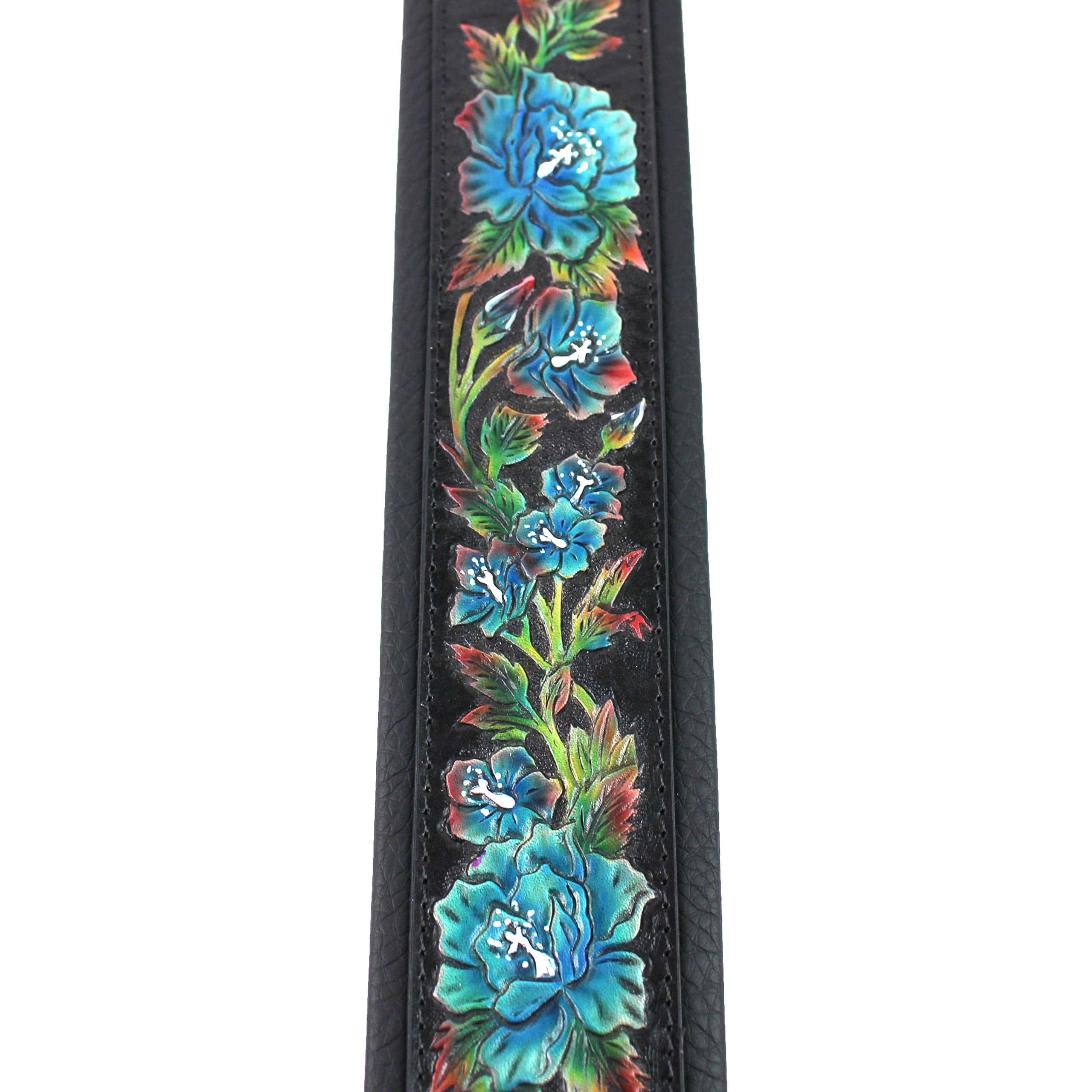 Walker & Williams es un fabricante estadounidense de larga tradición en la producción de productos de cuero de alta calidad, con más de 100 años de experiencia en el mercado y recientemente ha comenzado a producir estas excelentes correas de guitarra. Nuestra nueva serie K presenta una gruesa losa central de cuero tallado de grano completo, adornada con diseños intrincados hechos a mano. Correa KB-11 Gloss Black con Rosas Azules Talladas en Cuero de GranoGloss Black Strap con pieza central de cuero tallada de grano completo Espalda de cuero acolchado súper cómodo Rosas azules talladas con hojas verdes brillantes Doble refuerzo en los extremos Costuras superiores a juego Ancho de 2.5″ Ajustable de 42″ a 53.»Nos enorgullecemos mucho de nuestras correas. Aquí hay algunos de los comentarios recientes que hemos recibido. Nunca dejo reseñas, pero la calidad por el precio de esta correa es increíble. Se ve genial. Mejor que en las fotos Se siente genial. Incluso huele genial. Llevo tocando la guitarra durante más de 30 años y esta es mi correa favorita. No puedo comenzar a decirte cuánto mejor es esta correa en comparación con las compromisos de tienda local que he usado durante 40 años. Esta correa es exactamente lo que he imaginado como la correa perfecta. La mano de obra es realmente asombrosa. Definitivamente es una obra de arte. Estoy seguro de que durará toda la vida. Vale cada centavo. Tengo que decir que desde que descubrí el tesoro escondido que es Walker and Williams, cada correa que poseo proviene de esta increíble compañía. Realmente se preocupan por la calidad de su producto, son increíblemente hábiles en su oficio y claramente valoran a sus clientes.