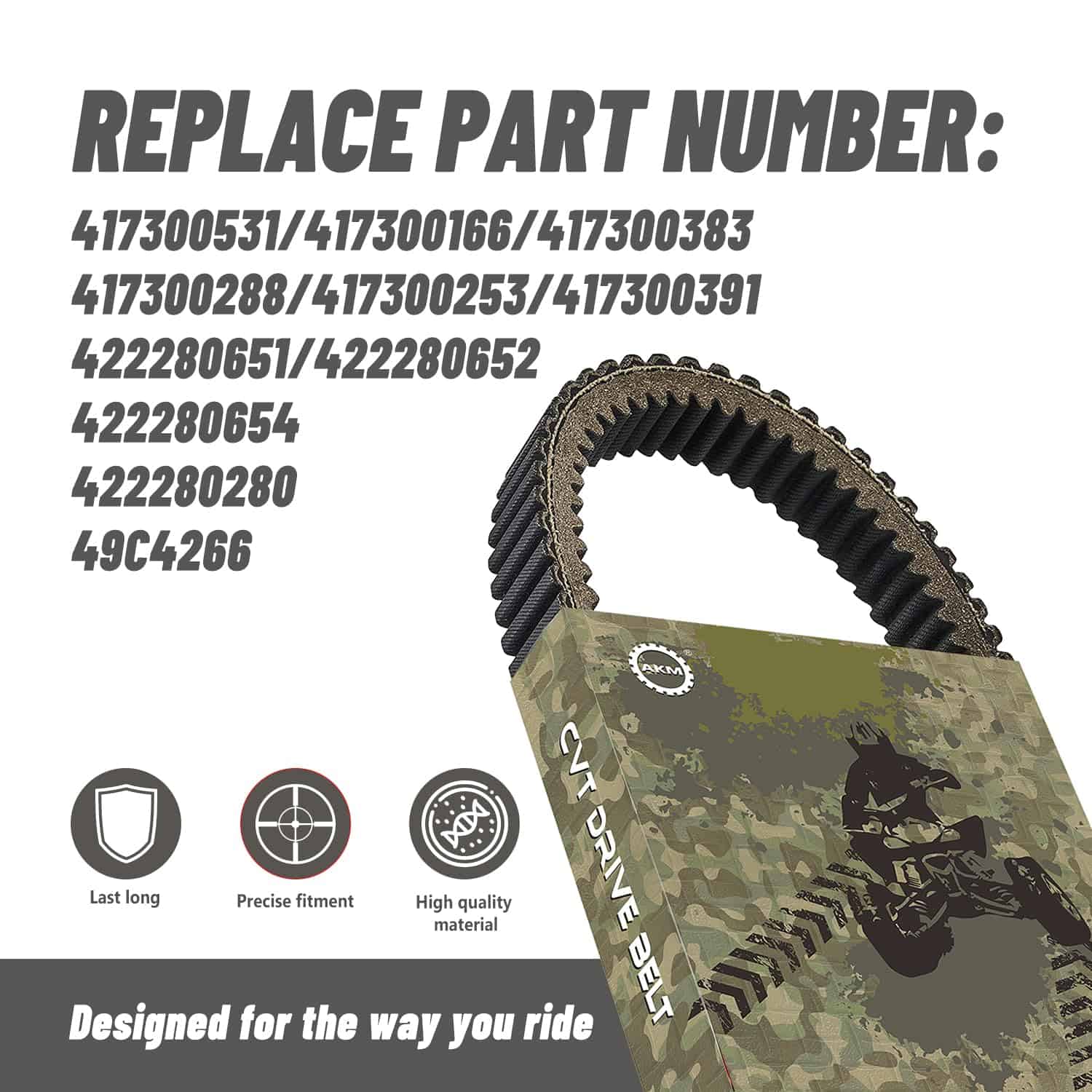 Las correas CVT AKM X3 son compatibles con una amplia gama de modelos Can-Am y Ski-doo, incluyendo Can-Am Maverick x3, Ski-doo Expedition, GSX, MX-Z, Renegade, Summit, Freeride, Backcountry, Grand Touring, Legend, Skandic y Tundra. Están diseñadas con un compuesto de alta temperatura llamado DUMAX que brinda una mayor resistencia al calor, lo que les permite mantenerse eficientes incluso en condiciones extremas. El diseño de paso preciso de las correas reduce el desgaste y extiende su vida útil. Con una resistencia de más de 10,000 libras, estas correas son excepcionalmente fuertes y duraderas, lo que las convierte en una opción confiable para cualquier aventura en la carretera o en la montaña.