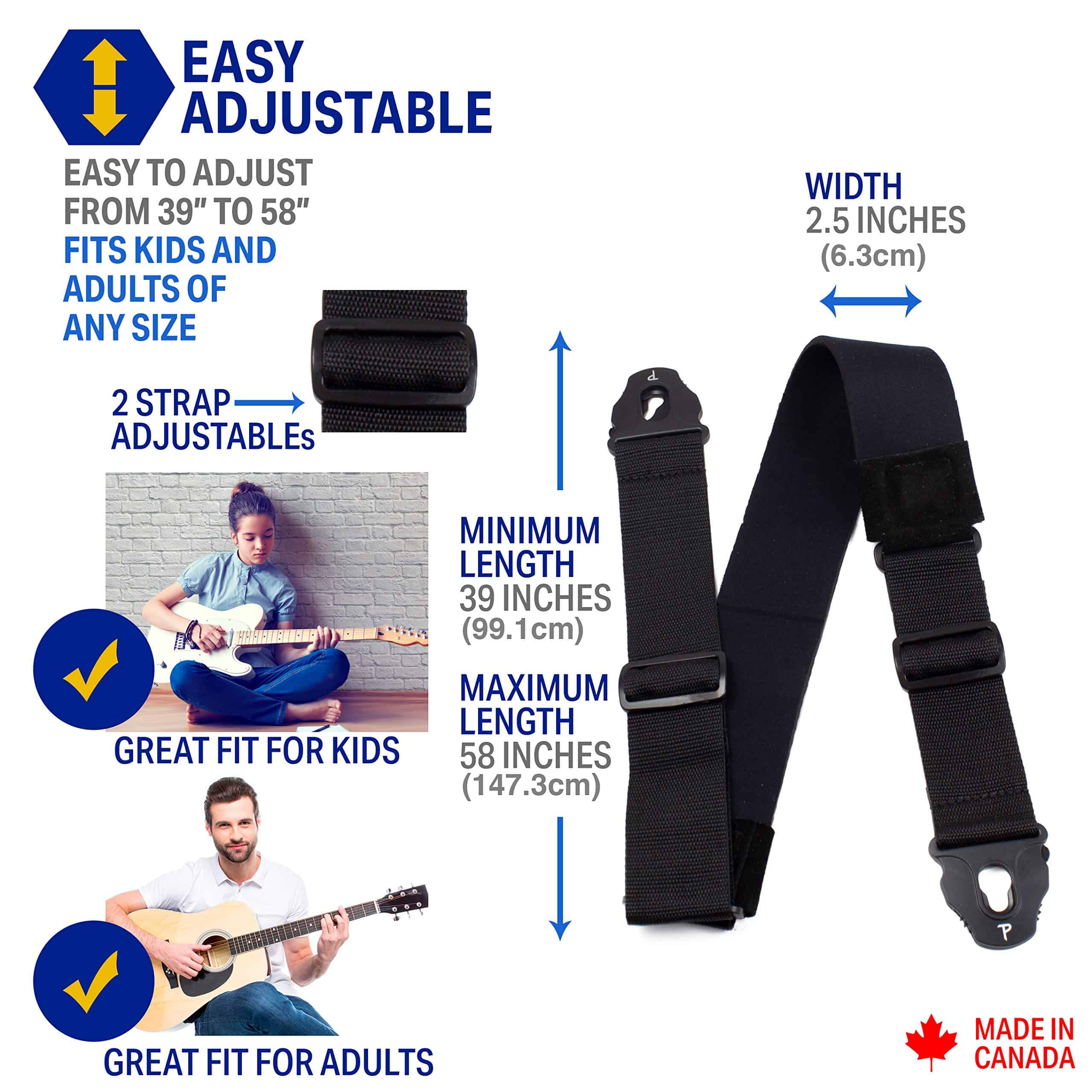 Perri’s Leathers correa de guitarra de 2.5″ de neopreno con extremos bloqueables es la combinación perfecta de comodidad y seguridad. Esta correa de guitarra está hecha con material de neopreno de alta calidad que puede hacer que las guitarras y bajos más pesados se sientan ligeros como una pluma. Combinada con nuestros extremos de bloqueo de Perri’s, nunca tendrás que preocuparte de que tu guitarra pesada (y cara) se caiga de la correa mientras tocas.