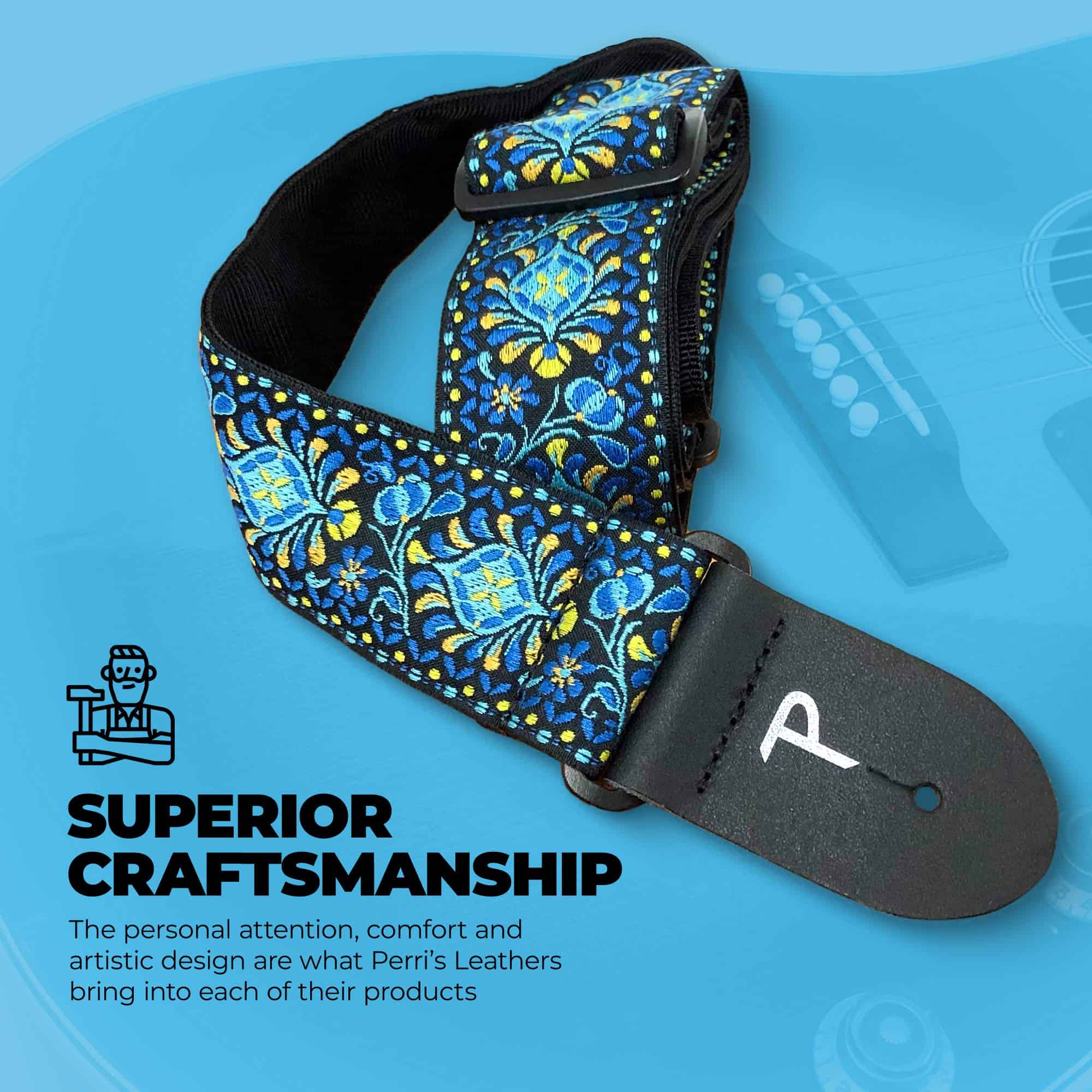 1. Correa de Guitarra Jacquard: Las correas de guitarra Jacquard de Perri�s Leathers están diseñadas para brindar comodidad, durabilidad y estilo. Con una longitud ajustable de 39″ a 58″, se adaptan a correas de guitarra acústica, eléctrica y de bajo.