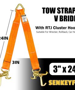Correas de Remolque SENKEYFE V Bridle, 3″ x 24″ Correa de Recuperación en V con Ganchos en Cluster RTJ, 5400LBS RT Juego de Gancho Compacto para Remolque en V, Correa de Remolque con Gancho para Remolque, Plataforma de Carga de Autos. ESPECIFICACIONES: Correa en V de 3″ x 24″, con Ganchos en Cluster RTJ en cada extremo; Incluye un Anillo de triángulo forjado de 5/8″ en la parte superior para enganchar, correa o cuerdas y asegurar sujeciones seguras.