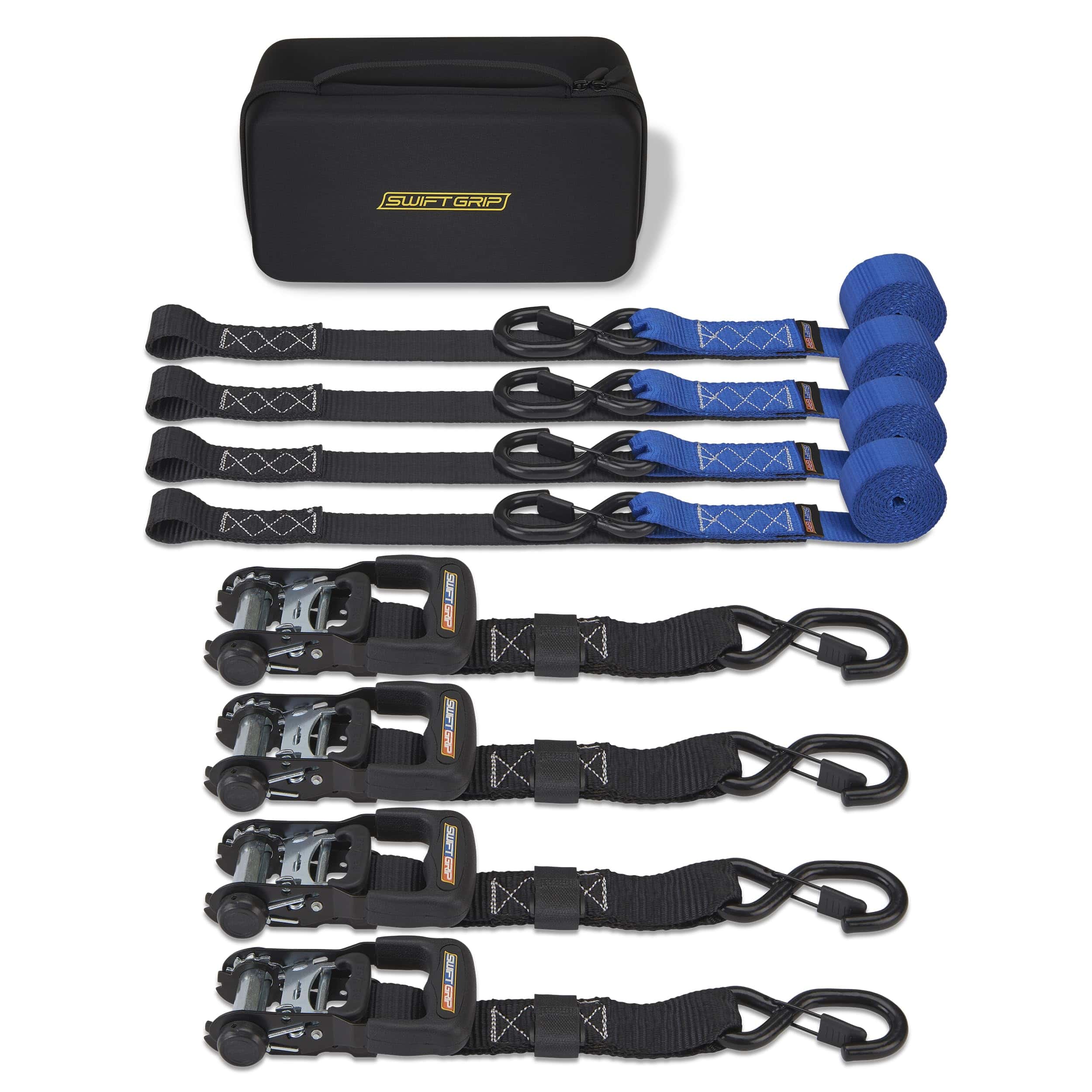 ¡Eleva la seguridad de tu carga hoy! Nuestras correas de trinquete para trabajo pesado son el epítome de confiabilidad, diseñadas para cumplir sus promesas cada vez. Protege tu carga con precisión utilizando ganchos suaves integrados para motocicletas, motos de tierra y amarres UTV. Despídete de los extremos sueltos de la correa, nuestra correa de velcro asegura una configuración ordenada y un almacenamiento fácil, ideal para camiones, motocicletas de tierra y más. El resistente estuche de transporte organizan el almacenamiento para tus correas de trinquete para trabajo pesado. Ya sea que busques correas de trinquete para motocicletas, amarres para camiones, o correas de amarre para motocicletas de tierra, nuestro producto brilla con luz propia. Confía en nuestra promesa Swift Grip para obtener calidad premium con ratchets de acero, ganchos en S resistentes a los arañazos, y correas de mezcla de poli irrompibles, todo respaldado por una garantía. No esperes más, asegura tu carga con confianza hoy!