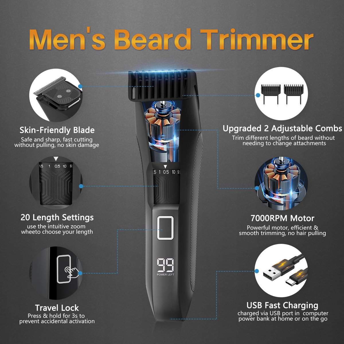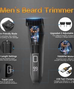 Cortadora de barba para hombres Beatslm Manscape, cortadora de cuerpo y región inguinal, afeitadora de bolas, cortadora de vello de nariz, kit de aseo todo en uno para hombres impermeable IPX7, recargable con estuche de viaje y pantalla LED. Nuestra cortadora de barba de precisión con una rueda de zoom intuitiva con 20 ajustes de longitud precisos (incrementos de 0.5 mm hasta 10 mm de longitud máxima) para elegir, el recortador de bigote puede recortar diferentes longitudes de barba, desde la barba de tres días hasta corta y limpia hasta gruesa e incluso, para que pueda desechar los múltiples accesorios para cortar y ajustar la cortadora de barba para sus necesidades recortar desde un bigote estilo leñador hasta barba, disfrutando de 60 minutos de uso inalámbrico después de una carga completa. Nuestro versátil kit de aseo corporal para hombres es un 3 en 1 que ilumina mejor múltiples tonos de piel con luces LED para que todos se sientan seguros recortando la zona íntima y el vello corporal, con 3 cabezales de recorte intercambiables: cuchilla para bolas, cuchilla de lámina y cuchilla para vello nasal, también es perfecto para recortar barba, vello de nariz, vello de oreja, vello de pecho, vello púbico, vello bikini y vello de axila, satisfaciendo todas sus necesidades de aseo diario con facilidad, disfrutando de 55-100 minutos de uso inalámbrico después de una carga completa. Las cuchillas suaves-seguras y amigables con la piel de nuestro kit de aseo corporal y de barba cuentan con cuchillas en forma de R y recortes que ayudan a minimizar los cortes, molestias dolorosas e irritaciones dolorosas en sus genitales y piel suave, hecho de hojas de níquel ultrafinas, la red de corte ultrafino proporciona un corte preciso cerca de la piel, permitiéndole disfrutar de una experiencia de afeitado más efectiva y segura, el kit manscape está equipado con carga USB Tipo C que se puede conectar a todos los cargadores con interfaz USB, como portátil, computadora, powerbank, etc. Nuestro kit de cortadora de barba y vello corporal eléctrico para hombres cuenta con un motor de alto rendimiento, sin tirones de pelo, alta eficiencia, bajo ruido, construido para hombres que buscan llevar la rutina de recorte y mantenimiento al siguiente nivel, con un diseño resistente al agua IPX7 que lo hace ideal para afeitarse en húmedo/seco, lo que le permite recortar en la ducha y limpiarlo fácilmente bajo agua corriente para una experiencia rápida y higiénica, manejando eficazmente todos los tipos de cabello, desde fino hasta grueso, satisfaciendo todas sus necesidades de aseo. Nuestros accesorios de alta calidad y amigables para viajar incluyen un kit de aseo para hombres que comprende una cortadora de barba, una cortadora de vello corporal, un cabezal de afeitado facial, un cabezal de cortadora de vello nasal y de orejas, un cable USB-C, una botella de aceite, 2 peines ajustables, un peine limitador, todo en un elegante estuche de almacenamiento, fácil de transportar y equipado con un seguro de viaje seguro, es ideal para el hogar/negocios/viajes, siendo una excelente opción de regalo para el Día del Padre, cumpleaños, Navidad o el Día de San Valentín para sus seres queridos, disfrútelo usted mismo o regálelo a un ser querido con el compañero de aseo definitivo
