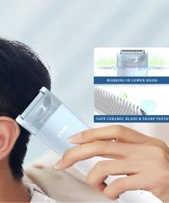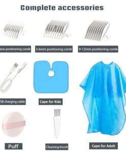 Características de la Cortadora de Cabello para Bebés Actualizada: – Aspiración automática de cabellos cortados, mayor potencia de succión – Vibración inferior y ruido de trabajo más silencioso, menos de 48dB – Tecnología de carga rápida y larga vida útil de la batería – Hoja de diseño especial R afilada con puntas redondeadas y hoja de cerámica para garantizar la seguridad – Totalmente lavable, todo el cuerpo de esta cortadora de cabello para bebés es resistente al agua en un nivel IPX-7 – 3 peines guía para que elijas libremente la longitud de corte del cabello. Especificaciones Técnicas de la Cortadora de Cabello: – Voltaje Nominal: 5.0V – Potencia Nominal: 5.0W – Frecuencia Nominal: 50Hz – Tiempo de Carga: 1 hora, Tiempo de Trabajo: 45 minutos – Capacidad de la Batería: 600mA. Contenido del Embalaje: – 1 Cortadora de Cabello para Bebés – 1 Cable de Carga USB – 1 Peine Guía para Longitudes de 3-6 mm – 1 Peine Guía para Longitudes de 9-12 mm – 1 Peine Guía para Patillas (1mm, 1-9mm) – 1 Capa de Corte de Cabello Antiestática – 1 Botella de Lubricante – 1 Esponja Suave – 1 Cepillo