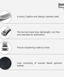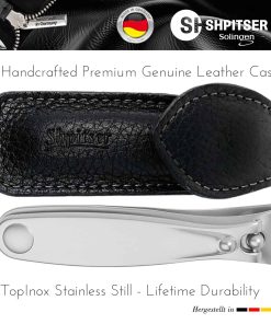 Cortaúñas grande para manicura y pedicura de Shpitser, fabricado en acero inoxidable alemán de alta calidad con un acabado en suave color negro. Este cortauñas está diseñado para proporcionar un corte preciso y limpio de uñas gruesas de dedos de pies y manos, gracias a sus superficies de corte curvadas y endurecidas. Su longitud de 8cm lo hace ideal para todo tipo y tamaño de uñas. El mango ergonómico antideslizante facilita el corte de uñas suave y sin esfuerzo. Este set de cortauñas es ligero y fácil de transportar, perfecto para llevarlo contigo a todas partes. Hazte con este cortauñas de calidad profesional y disfruta de unas uñas bien cuidadas y saludables en todo momento.