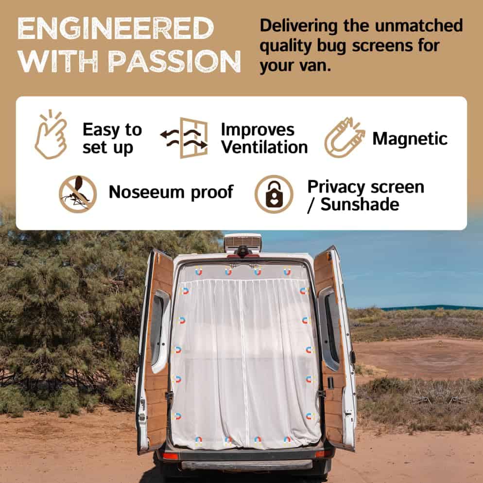 NO SE REQUIERE INSTALACIÓN – Simplemente desempaquete su nueva mosquitera magnética y adhiérala a la puerta corrediza de su campervan para sellar los insectos. Gracias a sus pequeños agujeros de 1 mm, ahora puede disfrutar del camping sin preocuparse por los mosquitos, moscas, arañas y bichos. ¡Este es uno de los mejores accesorios para RV!
