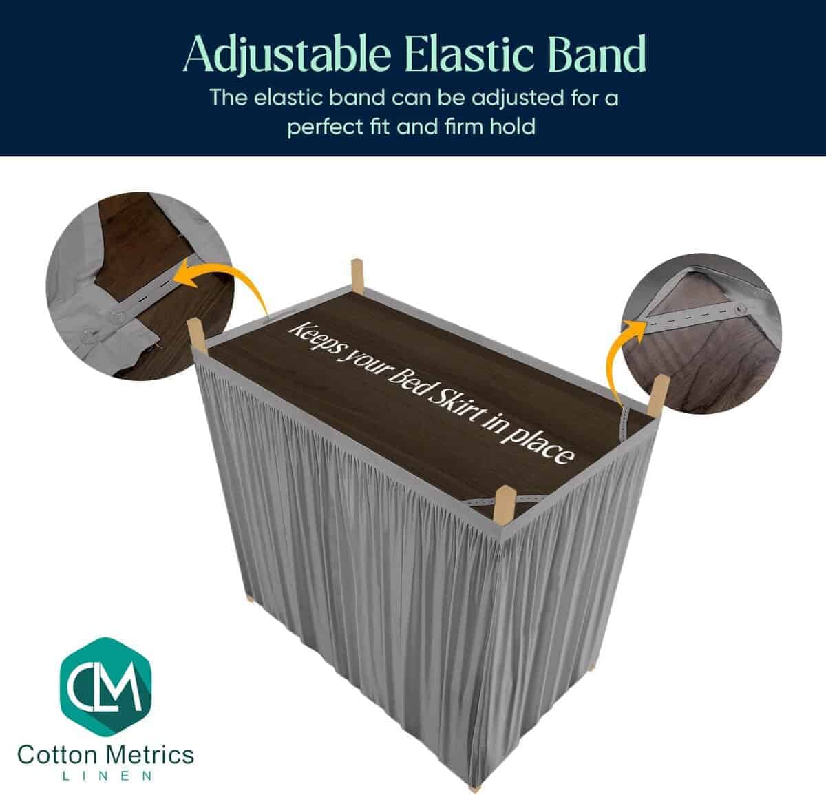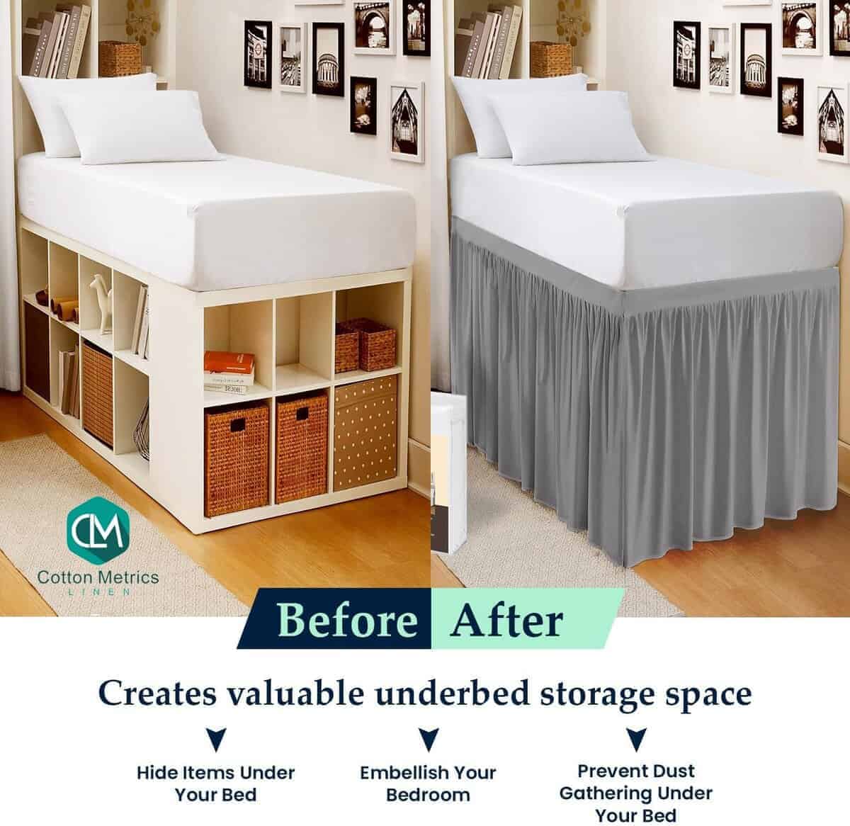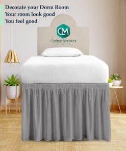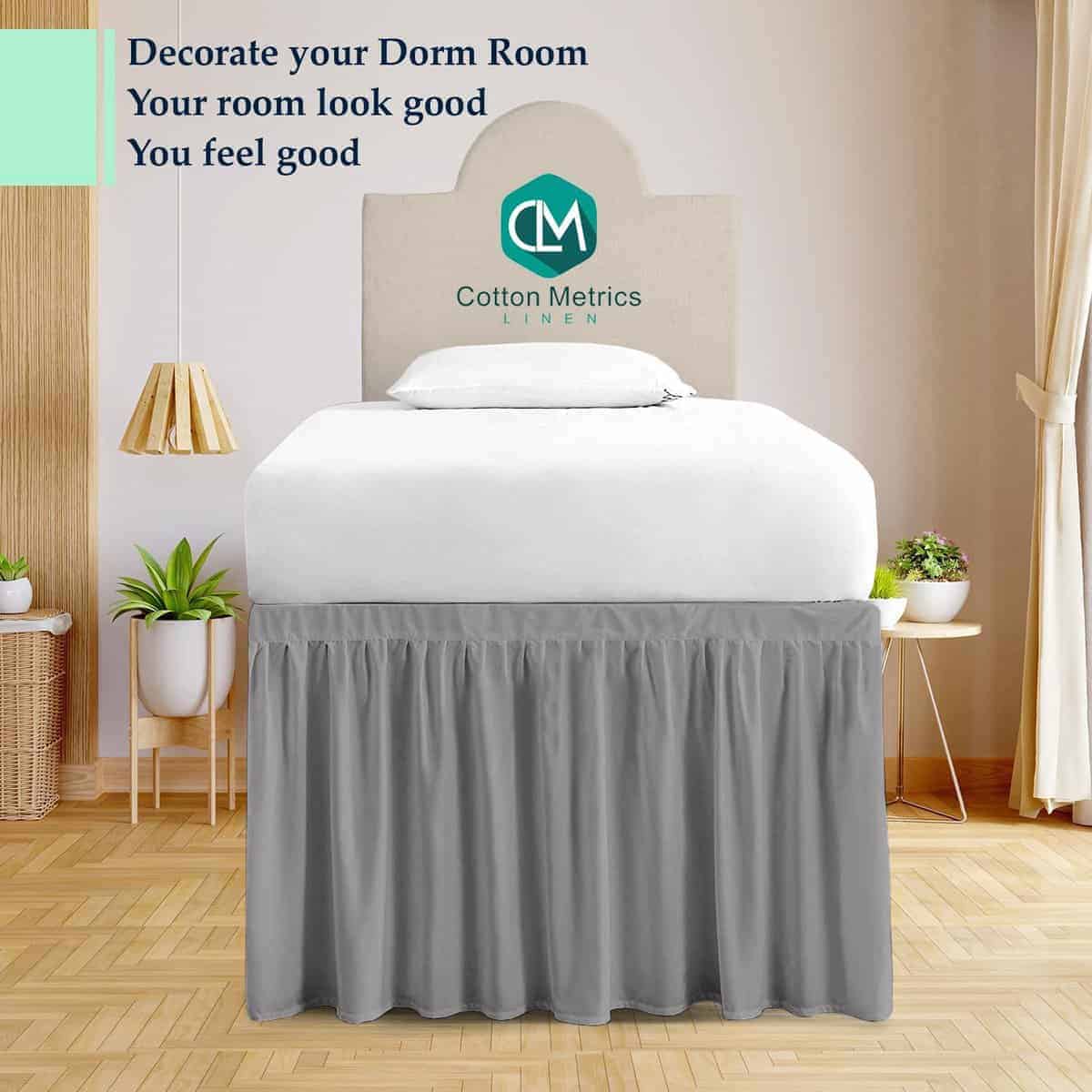 1. Incluye: Falda de cama para dormitorio de estudiantes cama individual XL de mezcla de algodón 100% en color gris plata, totalmente elástica con una caída de 42″.