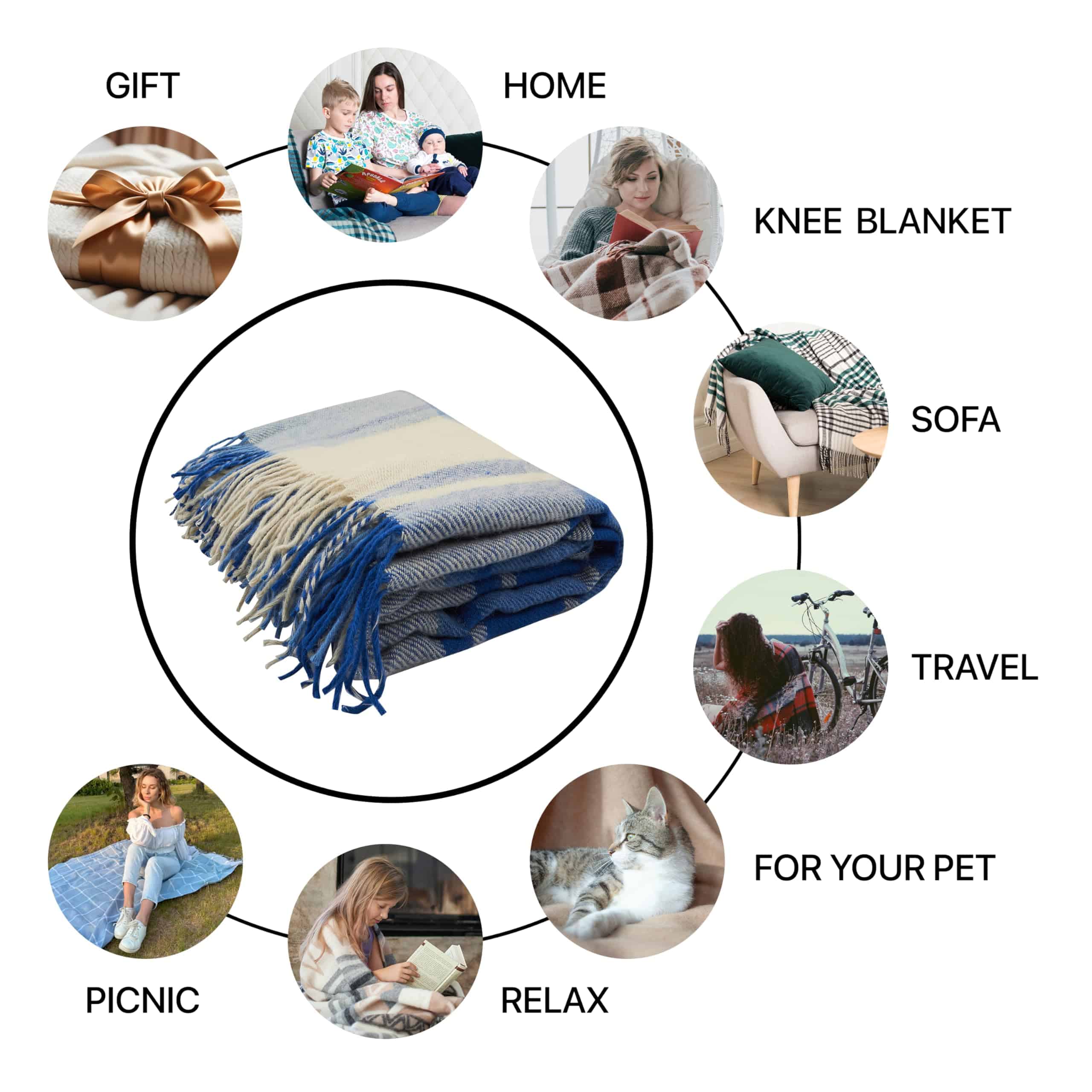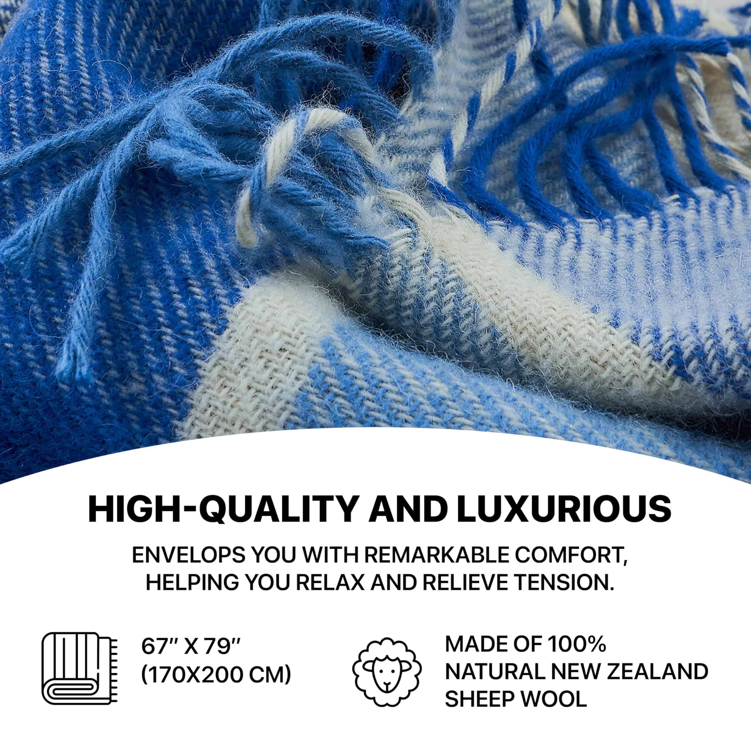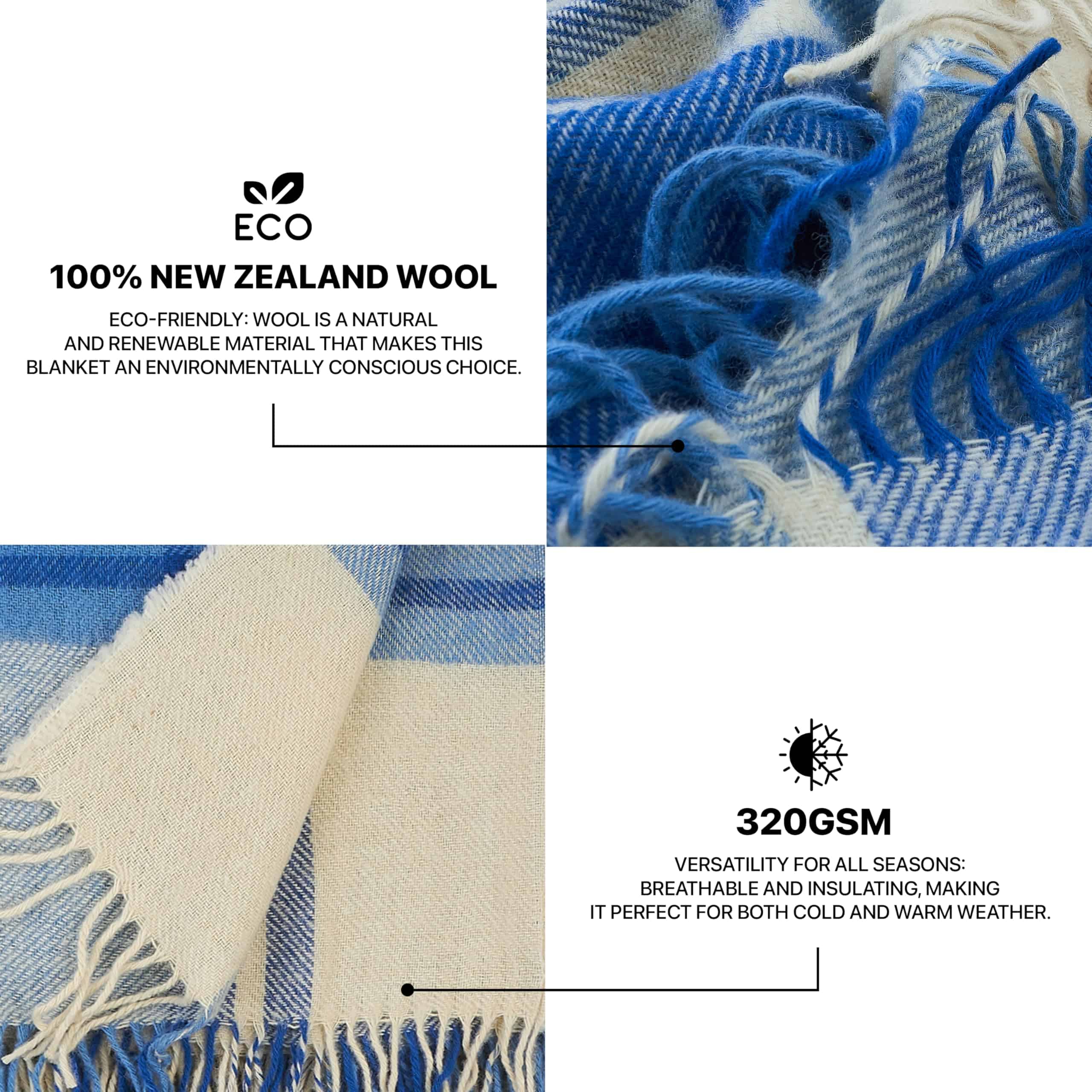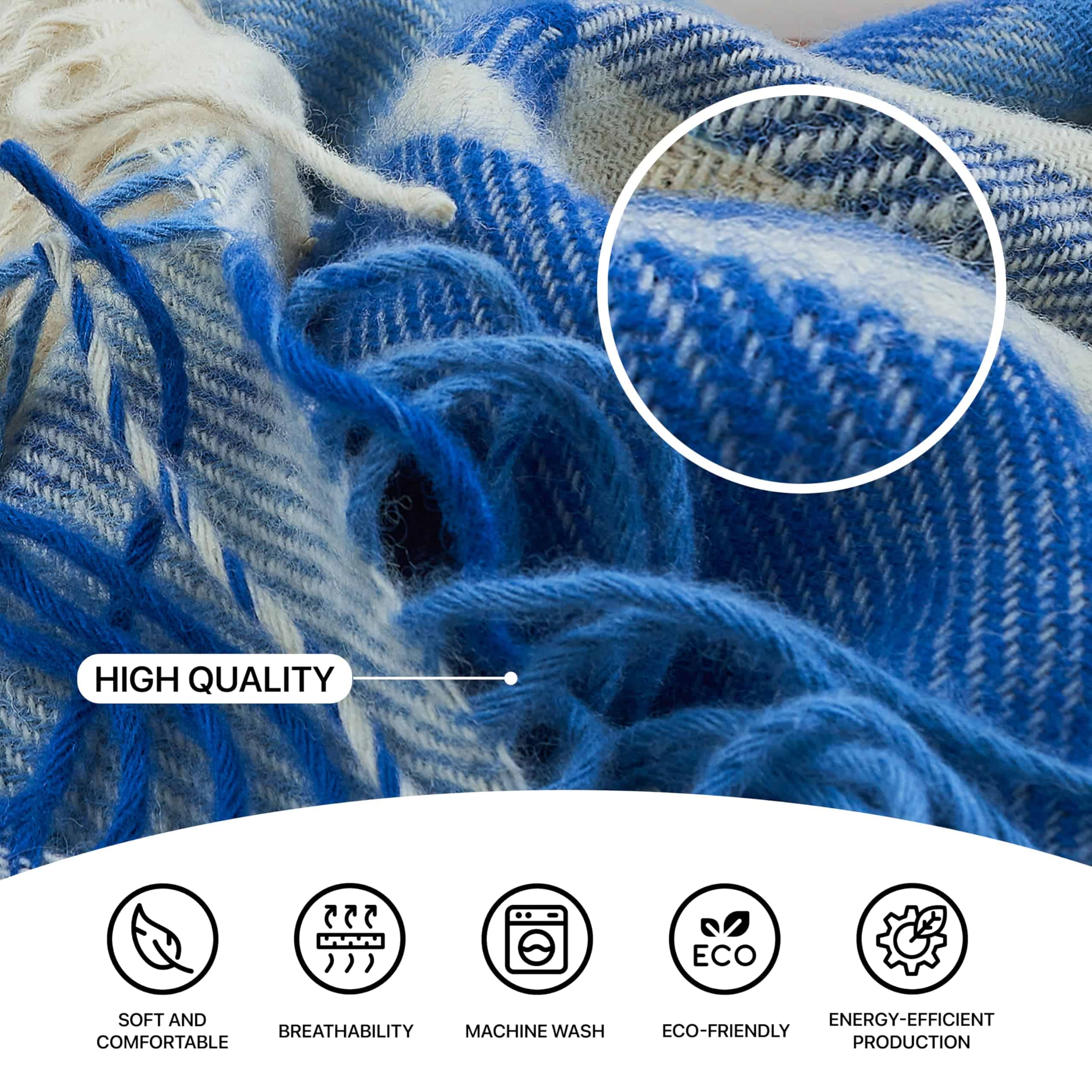 Cozy Blankets – Manta de Lana Virgen de -Azul y Blanco