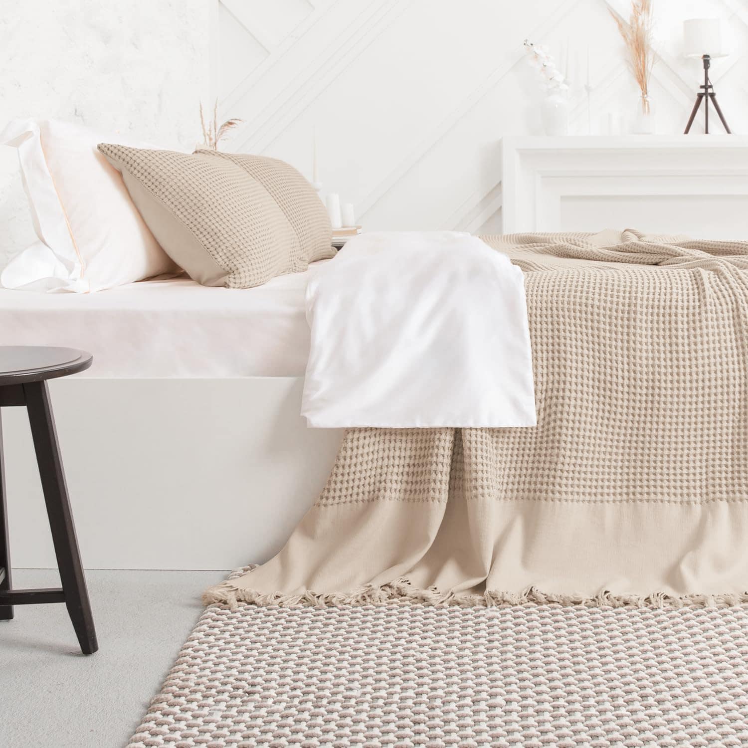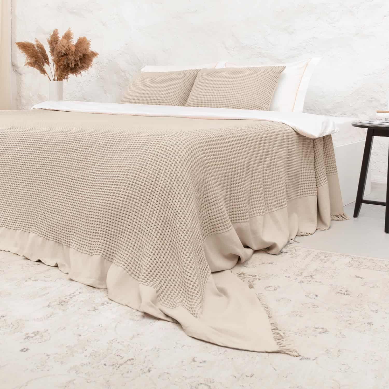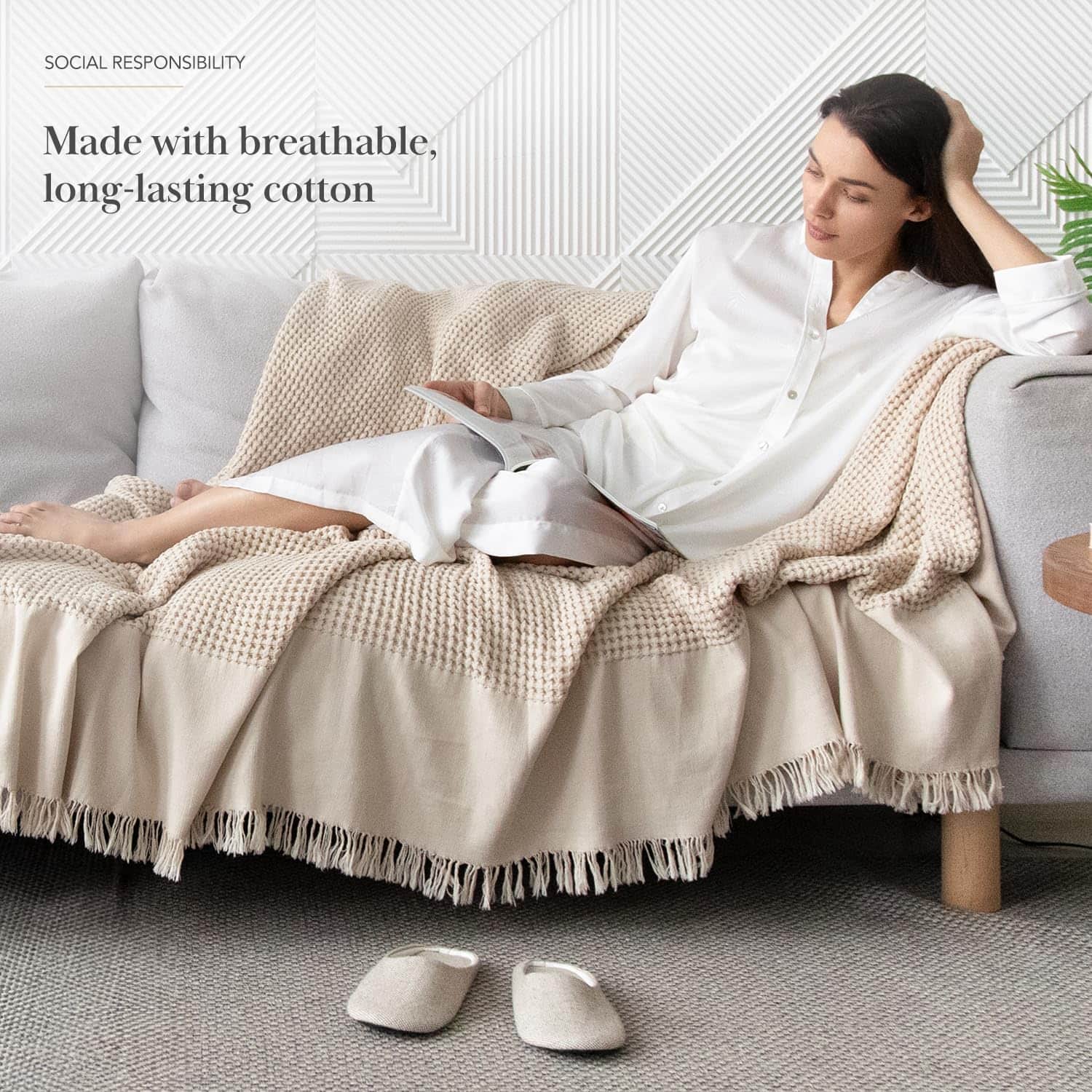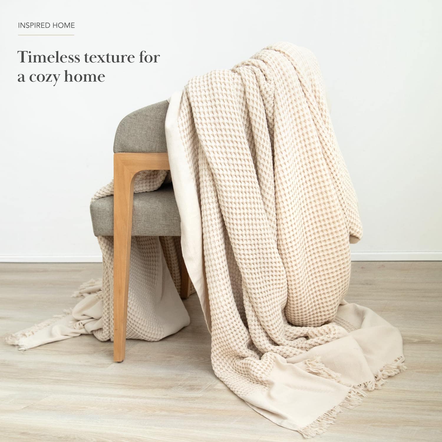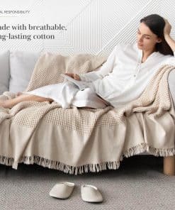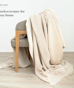 4. LUJO VERSÁTIL: Perfecta como un elegante cubrecamas para el sofá, o una capa adicional de calor en tu cama, el diseño de gofre con flecos añade un toque de textura y elegancia a cualquier espacio.