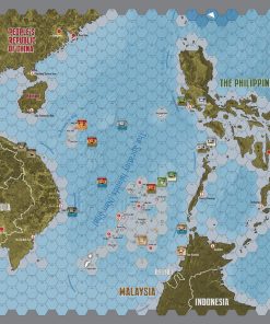 Juego estratégico a nivel integrado político y militar de conflictos reales y potenciales en el Mar del Sur de China entre 5 jugadores clave: EE. UU., China, Malasia, Filipinas y Vietnam. Los jugadores participan en actividades estructuradas para cambiar la situación política a su favor, pero cada actividad conlleva un riesgo variable de provocar un conflicto armado que cambia el juego al formato tradicional de tablero de hexágonos. 2 mapas, 39 cartas, 390 fichas, 3-7 horas por turno, 45 millas por hexágono, 2 barcos por ficha, nivel de batalla. Diseñado para 2-3 jugadores y se puede jugar en solitario. John Gorkowski’17
