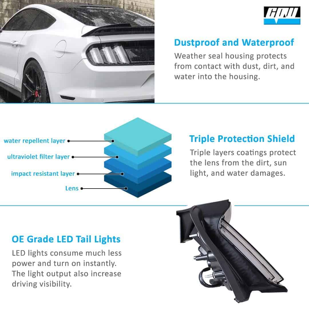 Compatibilidad: Para: Ford Mustang 2015 2016 Ford Mustang 2017 Ford Mustang 2018 Ford Mustang 2019 Ford Mustang 2020 Ford Mustang 2021 Ford Mustang 2022 Ford Mustang Destacado: Color: Claro Estado: 100% nuevo en caja. Paquete: Incluye 1 par de luces traseras (Lado del conductor izquierdo y lado del pasajero derecho) Función: Fácil de instalar: No necesita ningún otro taladro. Conectar y listo. Mejora la visibilidad: Las luces traseras mantienen la seguridad del conductor durante la noche, lluvias intensas, nieve o niebla densa extremadamente severa. La lente de policarbonato resistente ofrece protección superior contra los rayos UV y alta resistencia al impacto. Súper Impermeable: La carcasa duradera diseñada con sellador evita que la humedad, el polvo y la arena caigan dentro de los faros delanteros. Fabricado por un fabricante certificado ISO que utiliza materiales que cumplen con los estándares OE Este es un producto de reemplazo de mercado secundario y no está afiliado con ninguna otra marca o fabricante. Consejo cálido: 1. Al recibir el paquete, realice una inspección completa para asegurarse de que sea el producto que le gusta. 2. Antes de instalar, asegúrese de que la calidad del producto sea buena, si no, no lo instale y contáctenos con imágenes por correo electrónico. Además, vuelva a colocarlo en la caja original. 3. Brindamos una devolución de 30 días si hay daños al abrir la caja o si está defectuoso, garantía de 1 año de CPW.