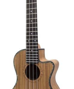 Añadiendo valor a tu compra, Austin Bazaar combina tu instrumento con accesorios necesarios. Ahórrate la molestia y ahorra algo de dinero mientras lo haces. Nuestro bundle exclusivo incluye una bolsa de transporte acolchada para que puedas mantener tu instrumento guardado de forma segura cuando estés en movimiento. La bolsa de transporte incluida cuenta con un duradero exterior de tela negra, con un suave y protector interior de algodón para mantener tu instrumento seguro y protegido en movimiento. Nuestro afinador digital incluido mantendrá tu instrumento afinado a la perfección, la correa incluida mantendrá tu instrumento en su lugar, y nuestro exclusivo DVD instructivo de ukulele brinda la oportunidad de aprender a tocar el ukulele con facilidad. Nuestro bundle también incluye un paño para pulir exclusivo de Austin Bazaar para mantener tu instrumento en condiciones óptimas. ¡Todo lo que necesitas para empezar a tocar directamente de la caja! Visualmente hermoso, este ukulele cuenta con una tapa, fondo y lados de koa en capas y ribete de 5 capas. La tapa de abeto y el mástil de madera proporcionan tonos ricos y completos. Los afinadores cromados permiten sonidos nítidos para una máxima capacidad de juego. La madera de koa más emblemática cubre un amplio espectro de frecuencias altas nítidas a bajas/fuertes y contundentes. Especificaciones: Mástil: Caoba laminada Tapa: Koa en capas Fondo/lado: Koa en capas Forma del cuerpo: Concerto Afinadores: Cromados con botones negros Acabado: Satinado en la Tapa, Abierto en los laterales y atrás Escala: 382.0mm/ 15.0 pulgadas
