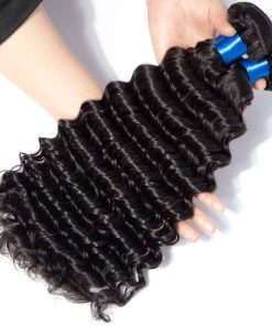 Extensión de cabello virgen brasileño de calidad premium con ondas profundas. Este paquete contiene un solo paquete de cabello humano virgen natural de color negro natural que se puede teñir y decolorar según tus preferencias. Nuestros productos de cabello son garantía de calidad, libres de cabello sintético o animal. La construcción de doble trama asegura una durabilidad y resistencia excepcionales, mientras que la suavidad del cabello garantiza una experiencia cómoda y natural al usarlo. No se produce derrame ni enredos y el cabello es fiel a su longitud y peso. Lleva tu estilo al siguiente nivel con esta extensión de cabello versátil y de calidad.