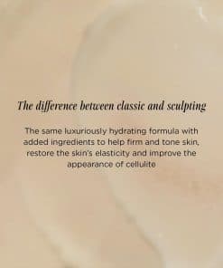 N14 Sculpting es una loción corporal pensada para aquellos que quieren mantener su piel firme, tonificada y saludable. Con una fórmula escultóra que apunta a la reafirmación de la piel, esta loción corporal es perfecta para mejorar la firmeza de tu piel, mientras la mantiene hidratada y suave. Infundida con una mezcla de péptidos, esta crema ayuda a reafirmar la piel, mientras que la cafeína contribuye a la recuperación de la elasticidad y a la reducción de la celulitis. Además, los ingredientes de grado dermatológico como el aceite de jojoba, la Vitamina C y el ácido hialurónico proporcionan a la piel toda la hidratación que necesita diariamente. Con una fragancia suave y floral de sandstone, esta crema reafirmante deleitará tus sentidos mientras cuidas tu piel. Finalmente, N14 Sculpting es limpia, vegana y libre de crueldad, perfecta para aquellos que buscan una loción reafirmante con ingredientes naturales y respetuosos con el medio ambiente.