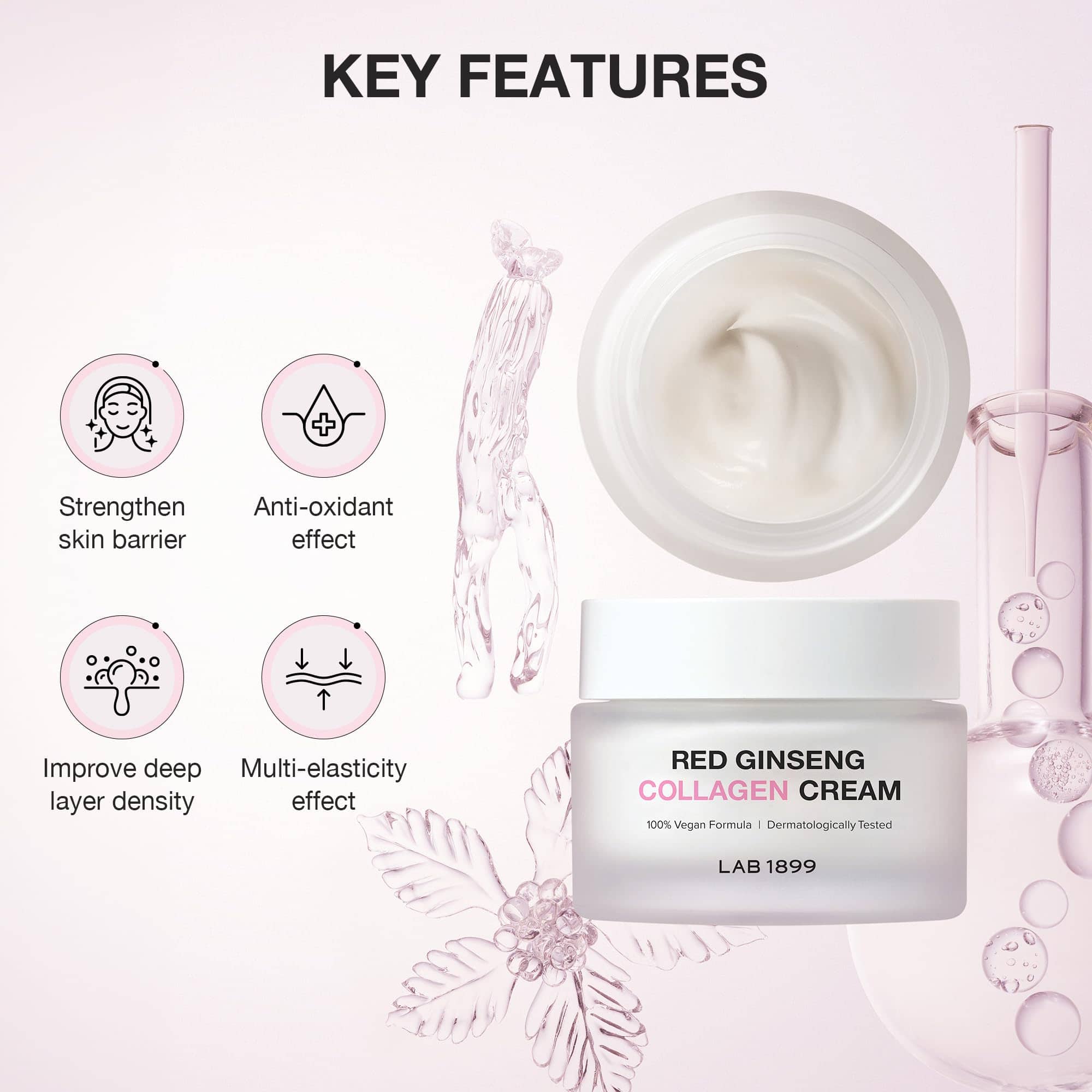 Crema de Colágeno de Ginseng Rojo Donginbi LAB 1899: La Crema Reafirmante Vegana para Piel Suelta y Hidratante Facial para Piel Seca