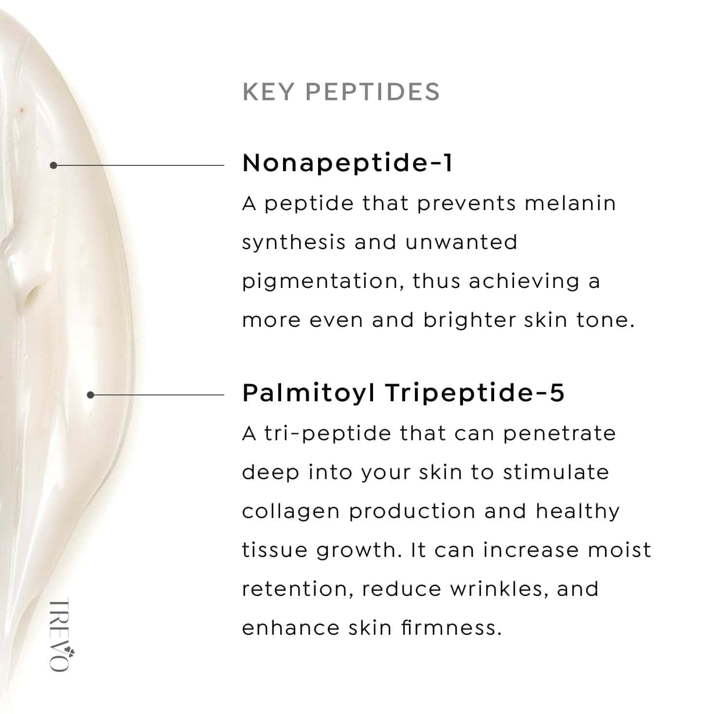 Crema de Día Iluminadora Trevo Peptide – Crema Avanzada Iluminadora y Anti envejecimiento – Crema Facial con Péptidos Naturales, EAA y Ácido Tranexámico – Combate Opacidad y Manchas Oscuras – 50g/1.8oz. Experimenta el poder del Ácido Ascórbico 3-O-etilo (EAA), una Vitamina C estabilizada que ofrece efectos iluminadores superiores. Nuestra crema de Vitamina C estimula la síntesis de colágeno y péptidos, garantizando una piel radiante y saludable. Perfecta para tu rutina de cuidado de la piel. Nuestra Crema de Día presenta Nonapéptido-1 y Palmitoil Tripeptido-5, péptidos distintos que previenen la pigmentación, aumentan la firmeza y estimulan el crecimiento de tejido sano. Eleva tu rutina de cuidado de la piel con nuestra crema de péptidos para el rostro o crema hidratante para el día. Nuestra mezcla única de péptidos, EAA y ácido tranexámico crea un potente refuerzo iluminador, combatiendo la opacidad, manchas oscuras y decoloración. Logra una apariencia tonificada y equilibrada con un brillo saludable utilizando nuestra crema hidratante anti-envejecimiento y crema facial hidratante expertamente elaboradas. Elaborado con ingredientes suaves pero poderosos que ofrecen propiedades antioxidantes superiores y alta absorción en la piel, adecuado para todo tipo de piel. La textura no grasosa y de rápida absorción es perfecta debajo del maquillaje, garantizando una hidratación óptima. Eleva tu cuidado de la piel con nuestra versátil crema hidratante facial. Nuestra fórmula protege tu piel del daño del ADN, sirviendo como un agente anti-envejecimiento potente para un aspecto confiado que desafía la edad y el tiempo. Un imprescindible para un día estelar, nuestra crema facial hidratante revitaliza tu piel.