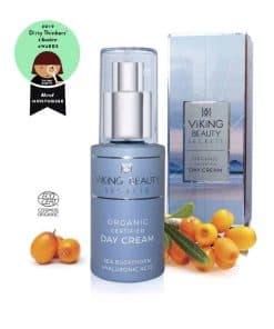 Hecha con potentes bayas nórdicas antioxidantes y Ácido Hialurónico, nuestra crema facial anti-envejecimiento está diseñada para disminuir las líneas finas y arrugas, ayudándote a lograr una apariencia más suave y juvenil. Formulada con Ácido Hialurónico, nuestra crema facial hidratante ayuda a restaurar la lozanía juvenil de tu piel. Al encerrar la humedad a nivel celular, cada gota trabaja para restaurar la humedad perdida, dejando tu piel flexible, lozana y maravillosamente hidratada durante todo el día. Nuestra crema de día está probada por dermatólogos y es adecuada para todo tipo de piel, incluyendo la piel sensible, garantizando una experiencia de cuidado de la piel suave pero efectiva. Certificado Ecocert COSMOS Crema Facial Orgánica. Contiene ingredientes orgánicos y naturales certificados únicamente. Nuestra crema facial no contiene sustancias químicas dañinas y es no transgénica. También está libre de colores y fragancias artificiales. Todos los productos de Viking Beauty Secrets son libres de crueldad animal. Para obtener mejores resultados, aplica una capa generosa de esta crema de día en el rostro, cuello o escote después de limpiar por la mañana. Esta crema facial multiusos se puede utilizar como hidratante o nutriente para la piel.