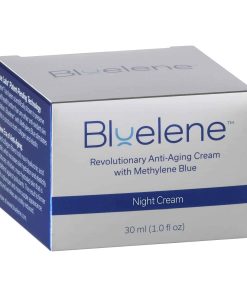 Crema facial de noche Bluelene, formulada con azul de metileno para combatir los signos del envejecimiento. Esta crema revolucionaria suaviza las líneas finas y repara las arrugas, dejando la piel más firme y radiante. Adecuada para todo tipo de piel, incluida la sensible. Disfruta de una piel renovada y rejuvenecida cada mañana con la crema de noche Bluelene.