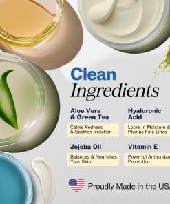 ¡Efectos anti-envejecimiento avanzados! Una mezcla equilibrada de activos que combaten las arrugas, nuestra fórmula nutriente para crema facial antiarrugas está diseñada para ser utilizada 2 veces al día (mañana / noche) para ayudar a la apariencia de la piel envejecida mientras revela la belleza radiante y natural de tu complexión. ¡Calidad máxima y resultados potentes! Una textura ligera y cero residuos, esta crema facial anti-envejecimiento se absorbe inmediatamente para dejar la piel sintiéndose hidratada y refrescada. Suficientemente suave para todo tipo de piel, incluso la piel sensible. Minimiza manchas solares y daños UV. ¡Adiós a las imperfecciones! Nuestro poderosa fórmula de Vitamina A puede ayudar a minimizar la apariencia del enrojecimiento y cicatrices del acné, así como suavizar y suavizar la textura y tono de la piel áspera o desigual. No comedogénico, puedes confiar en LilyAna para ayudar a eliminar las imperfecciones del acné. Ingredientes limpios, veganos, no tóxicos; sin fragancias o colores artificiales, y libre de sulfatos, parabenos, ftalatos, petrolato, fragancias sintéticas, colorantes artificiales y formaldehído. ¡Cruelty-free; nunca hemos ni nunca probaremos en animales!