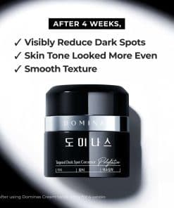 Respaldada por los 60 años de experiencia de Tai Guk Pharm, la Crema DOMINAS es una sofisticada solución para diversos problemas de pigmentación de la piel. Su fórmula inteligente va más allá de las imperfecciones visibles y se enfoca en las decoloraciones sutiles que a menudo pasan desapercibidas. Desarrollada para corregir y recuperar la piel desigual, esta crema es un aliado confiable para una tez uniforme y luminosa.