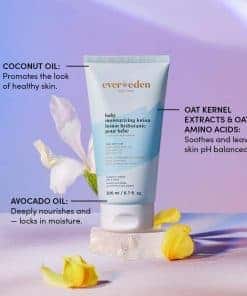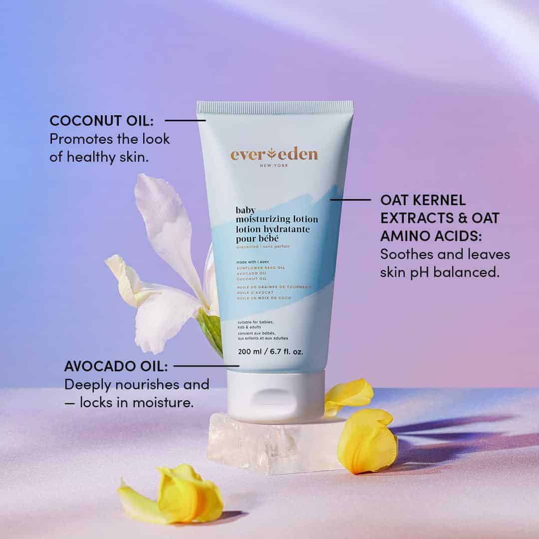 Crema Facial para Bebés Evereden, Bálsamo Labial y Mini Loción Corporal para Recién Nacidos. Cuidado Limpio y Gentil, Vegano, Fácil de Usar Barra de Labios para Niños Pequeños, Crema, Loción para Hidratación Calmante – No Graso, Sin Fragancia. Esta crema facial para bebés está especialmente formulada para la suave piel del bebé. Cuenta con concentraciones premium de aceites botánicos, ceramidas de avena esenciales y extracto de Caléndula para una profunda y duradera hidratación. Ideal para reponer la barrera de humedad de la piel del bebé, esta crema emoliente nutre, calma e hidrata la piel seca e irritada del bebé. También es perfecta para hidratar los labios secos y calmar las irritaciones alrededor de la boca del bebé con un bálsamo especialmente diseñado para los labios sensibles del bebé. Desarrollada para los recién nacidos, la Loción Corporal Hipoalergénica para Bebés de Evereden proporciona una hidratación duradera, una reposición de la barrera cutánea superior y propiedades calmantes para la piel. Hecho en EE. UU. con ingredientes de EE. UU. e importados, nuestras lociones para bebés son creadas por pediatras y probadas por dermatólogos, lo que garantiza que son no tóxicas y limpias. Confía en la crema facial para bebés Evereden para proporcionar el cuidado limpio y gentil que la delicada piel de tu bebé necesita.