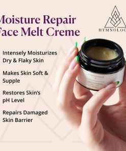 Nuestra crema facial reparadora Hymnologie Moisture Repair Face Melt está formulada para brindar una hidratación profunda y enriquecedora a tu piel. Elaborada con ingredientes de alto rendimiento, esta crema utiliza el poder de la naturaleza para suavizar la textura de tu piel y lograr un brillo radiante. Esta crema facial combina el aceite rejuvenecedor de Jojoba, el calmante aceite de Albaricoque, la sensación no grasa de una loción y el aroma relajante de Lavanda, incienso y Vetiver. Nuestra crema fundente es una excelente opción para mujeres y hombres de todos los tipos de piel, ya que funciona de manera efectiva y diaria sin causar brotes. Sea cual sea tu tipo de piel, esta crema hidratante es para ti. Imagina tu piel absorbiendo las propiedades nutritivas de los aceites esenciales mientras tus sentidos se relajan con el aroma terapéutico de la lavanda. El lujoso aroma, textura e hidratación de esta crema transformarán tu ritual de cuidado de la piel para siempre. Potencia la luminosidad de tu piel con nuestra crema facial derretida, una crema hidratante facial que supera las expectativas. Notarás que tu piel luce más suave, hidratada y con un brillo radiante que grita salud y restauración.