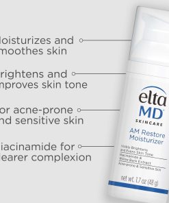 EltaMD AM Restore Face Moisturizer es la elección ideal para aquellos que buscan una loción facial versátil para mujeres y hombres. Esta crema facial ligera para mujeres y hombres hidrata eficazmente con su formulación sin aceite, atendiendo a ambos géneros con sus ingredientes equilibrados. Formulada con Niacinamida y Ácido Hialurónico, esta crema hidratante facial para hombres y mujeres tiene como objetivo restaurar los niveles naturales de humedad de su piel, sirviendo como una excelente loción para la piel seca. Su combinación de Vitamina B3 y extractos naturales mejora la retención de humedad, brindando una hidratación de larga duración para un acabado suave y terso. La crema hidratante facial de EltaMD destaca en ayudar a las pieles sensibles y propensas al acné, convirtiéndola en una crema hidratante imprescindible para cualquier persona que necesite una crema hidratante facial sin aceite confiable que no obstruya los poros. Ideal para mantener la juventud de su piel, funciona mejor como una loción para piel seca, ayudando a reparar y proteger contra daños, al tiempo que es sin perfume y no comedogénica. Esta conveniente botella con bomba de la crema hidratante facial diaria de EltaMD prioriza un enfoque sutil y eficaz de cuidado de la piel que complementa cualquier tipo de piel.