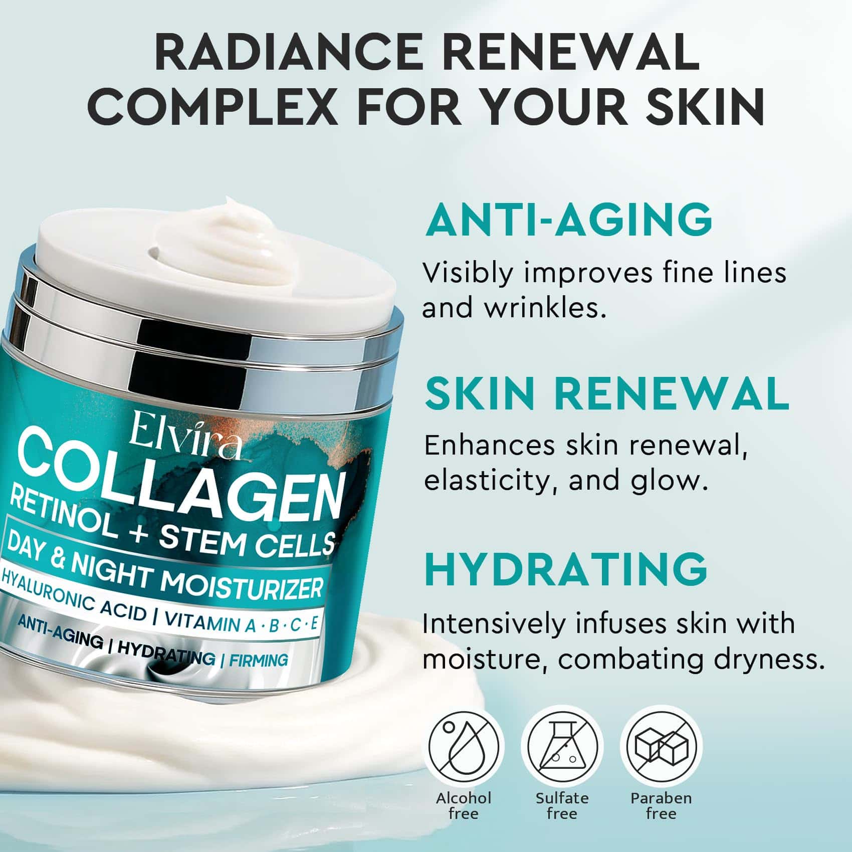 Crema Hidratante Facial Elvira con Colágeno, Retinol,
