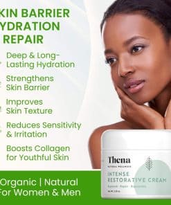 Libre de fragancias y aceites esenciales, la Crema Hidratante Facial Para Piel Seca de Thena es ideal para las personas con piel sensible, seca o mixta. Su fórmula suave y reconfortante calma la piel irritada y ayuda a restaurar su equilibrio natural.