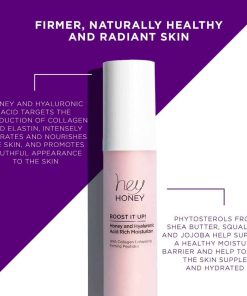 Hey Honey Skincare Boost It Up Honey Extract & Hyaluronic Acid Rich Moisturizer es una crema hidratante potente diseñada para combatir las señales prematuras y avanzadas del envejecimiento de la piel. Con extracto de miel natural y ácido hialurónico, esta crema proporciona una hidratación profunda y duradera hasta por 72 horas. Además, está enriquecida con manteca de karité, escualano y jojoba para apoyar una barrera de humedad saludable y mantener la piel nutrida y flexible. Su fórmula única no solo ayuda a hidratar la piel, sino que también la deja más firme, radiante y saludable. Disfruta de una piel rejuvenecida y protegida con esta crema hidratante libre de crueldad animal, ingredientes limpios y sin parabenos. ¡Descubre el poder de Hey Honey Skincare Boost It Up para lograr una piel hermosa y radiante!