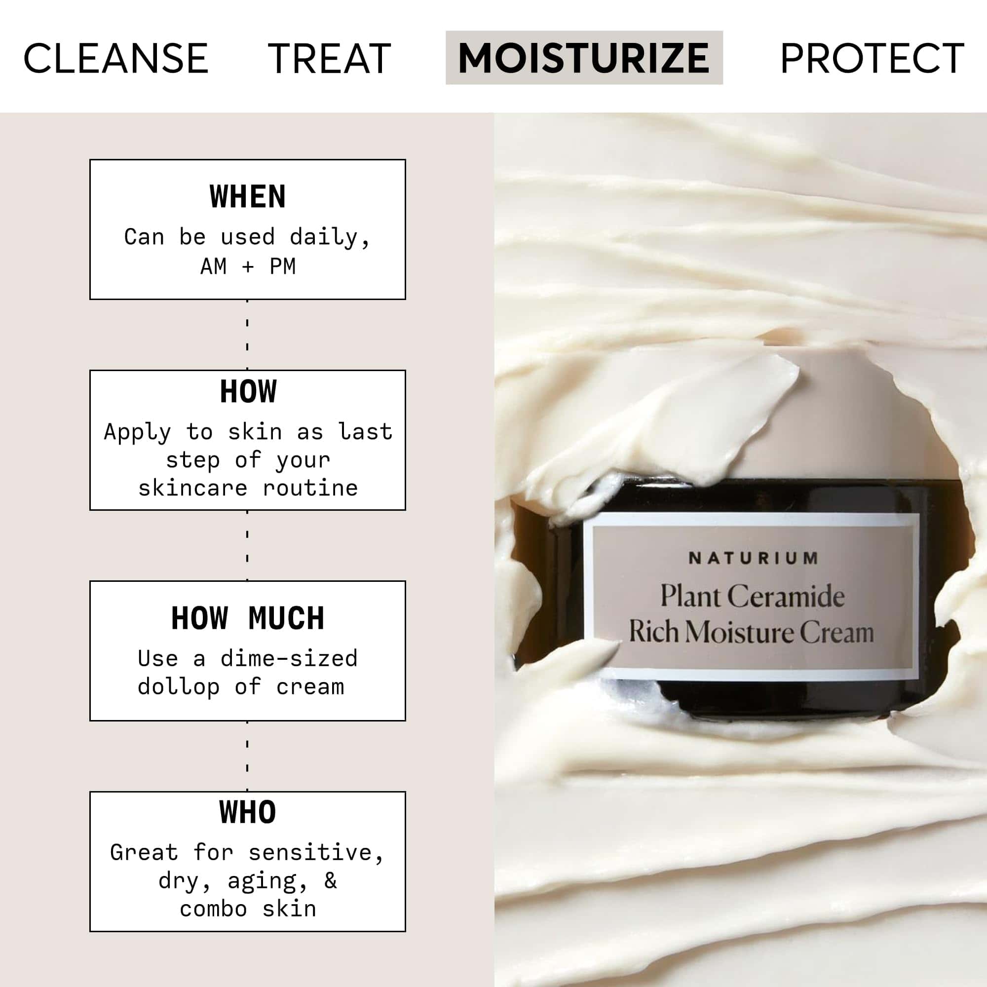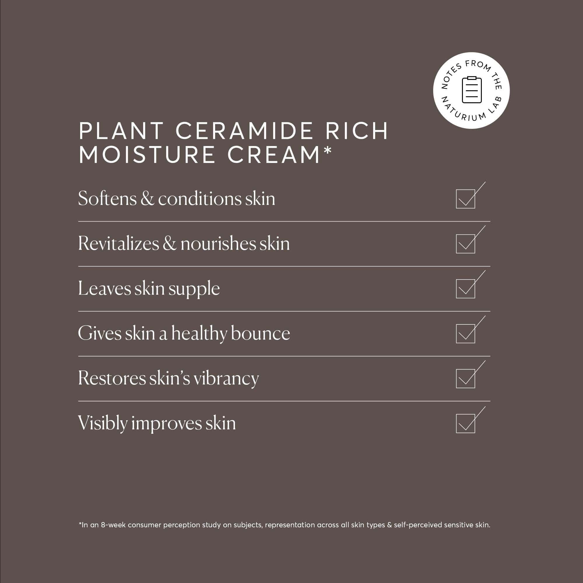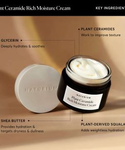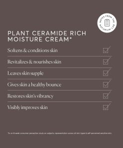 Nuestra rica y nutritiva crema de ceramida hidratante está formulada con un nivel eficaz de ceramidas de origen vegetal. Naturalmente protegidas por una capa de fosfolípidos, estas ayudan a restaurar y apoyar la barrera de humedad natural para aliviar la piel seca.