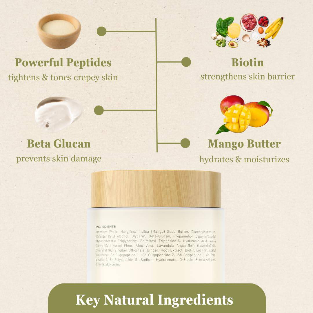 Esta crema corporal protectora de la piel de gallina NutraVive Body Protect es el complemento perfecto para tu rutina de cuidado de la piel. Su fórmula avanzada y única está diseñada para proporcionar una protección profunda y una nutrición intensiva para tu piel. Con ingredientes de alta calidad como el complejo de péptidos NutraFirm, Biotina, Manteca de Semilla de Mango, Beta Glucano, Aceite de Lavanda y Aloe Vera, esta crema ayuda a reafirmar, tonificar y rejuvenecer la piel envejecida, seca y arrugada. Puede usarse en todo el cuerpo, incluida la cara, para apoyar la reparación natural de la piel y mejorar la elasticidad y la luminosidad. Descubre la diferencia que puede hacer esta crema hidratante y protectora para la piel, y experimenta una piel más firme, suave y flexible con NutraVive Body Protect Cream.