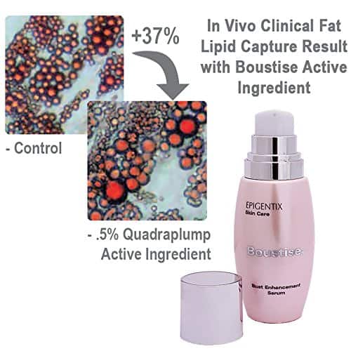 Crema ORGÁNICA para Aumento y Reafirmante de Busto BOUSTISE QuadraPLUMP – 2 Meses de Suministro – Loción Natural para Aumento de Busto – Fabricado en Canadá 2.7 oz. Esta crema de aumento y reafirmante de busto de BOUSTISE contiene QuadraPLUMP, que es una combinación de 4 potentes activos orgánicos basados en plantas diseñados para atrapar grasa y aumentar la humedad en el busto. Después de 8 a 12 semanas de uso, se observa un aumento promedio de una talla de copa en el volumen del busto, así como un aumento en la firmeza. Los usuarios reportaron un aumento adicional en el 3er y 4to mes de uso, lo que hace que esta crema sea altamente efectiva. Además, es una crema premiada que contiene multi péptidos de soporte de colágeno y un potente cóctel de vitaminas de entrega micro para proporcionar un elevante dramático y firmeza a la piel del busto. Su fórmula ligera permite una aplicación específicamente dirigida para aumentar el busto o los glúteos, a diferencia de las píldoras tradicionales para el aumento de busto. Además, esta crema está formulada sin parabenos y utiliza extractos de CO2 de grado de laboratorio, cumpliendo con GMP y siendo fabricada en Canadá en un laboratorio funcionando con energía verde.