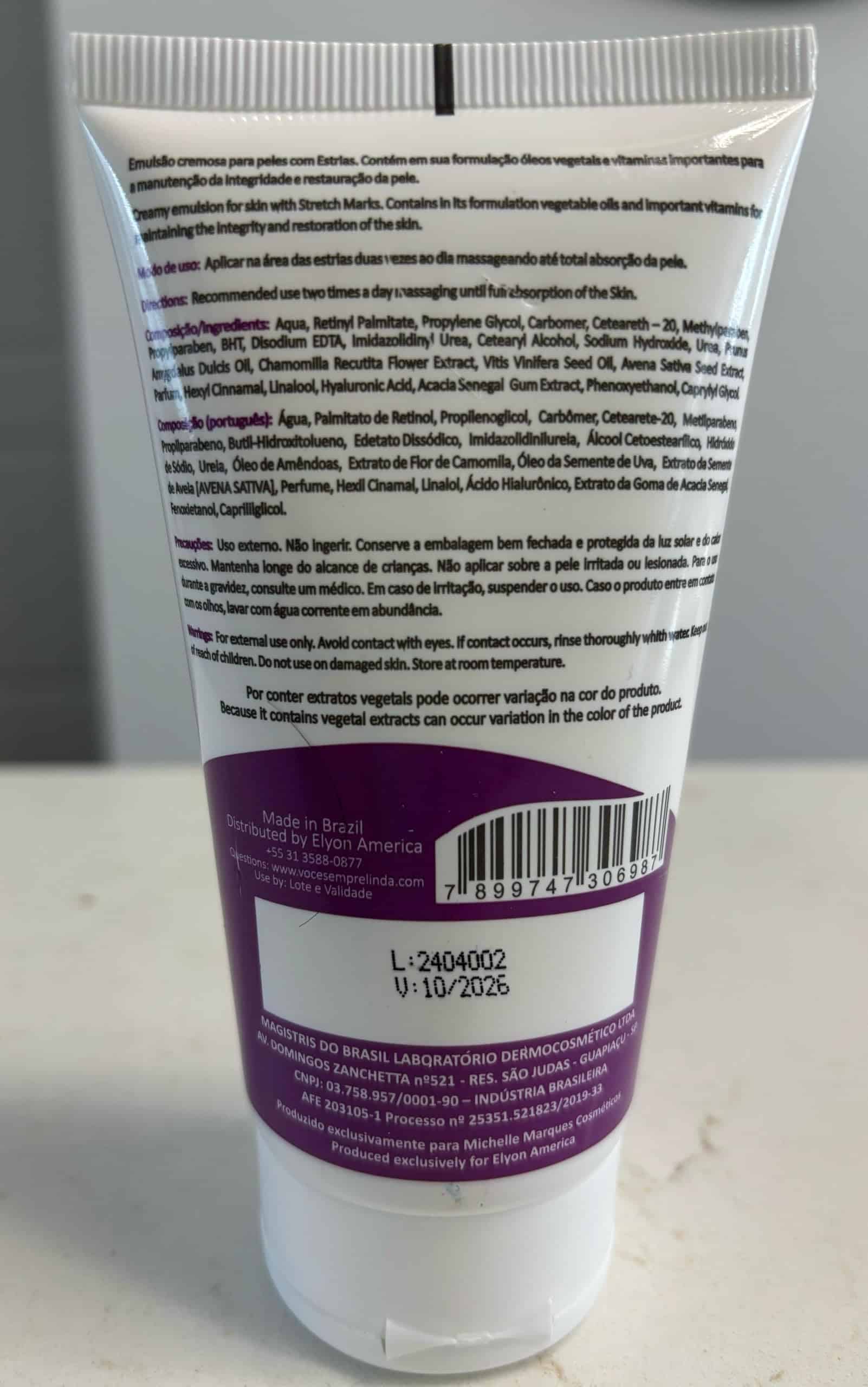 Crema para las Estrías Michelle Marques: Logra una piel más suave y saludable con nuestra crema diaria para las estrías. Formulada con Nanotecnología de elevación brasileña, esta crema penetra profundamente en las capas de la piel y ataca las estrías en su origen, reduciendo su apariencia y mejorando la textura de la piel con el tiempo. Con el uso constante, las estrías suavizan y se vuelven menos prominentes, brindándote una sensación de confort en tu piel. Enriquecida con una mezcla de ingredientes naturales como aceite de almendras dulces, aceite de semilla de uva, y extractos de manzanilla y avena, nuestra fórmula nutre la piel, mejorando su elasticidad y aliviando cualquier incomodidad asociada con las estrías. Apto para todo tipo de estrías, ya sean blancas, rojas o moradas, nuestra crema es efectiva y permanente en suavizar y reducir la apariencia de las estrías. Disfruta de una piel más suave y saludable con la crema para las estrías Michelle Marques.