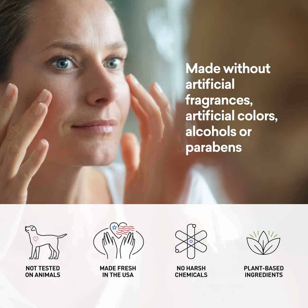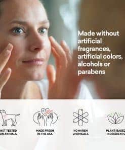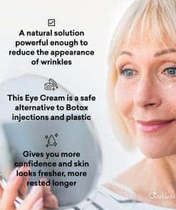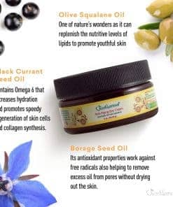Esta crema para los ojos antienvejecimiento trabaja instantáneamente para restaurar, hidratar, levantar y iluminar la piel alrededor de los ojos. El aceite de escualano de oliva, aceite de semilla de grosella negra y aceite de rosa mosqueta son ricos en vitaminas y aumentan la hidratación, mientras que los taninos del aceite de semilla de borraja tensan y firman suavemente las líneas finas. Nuestra crema para los ojos antienvejecimiento ultradelicada reduce la apariencia de arrugas, trabaja con el tiempo para disminuir la apariencia de líneas finas. En Just Nutritive, no utilizamos ingredientes de animales ni realizamos pruebas en animales. Le aseguramos que cada botella está hecha a mano con amor en los EE. UU. y está hecha de los ingredientes más puros de la Tierra.