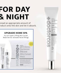 Crema DOCTORCOS de alta potencia de relleno para levantar el rostro es perfecta para apretar e hidratar la piel de su rostro. Se absorbe rápidamente y completamente en su piel para brindarle resultados suaves y poderosos en el momento en que la usa. La crema de relleno ayuda a levantar los ojos caídos y el doble mentón. Formulada con una combinación poderosa de ingredientes como Antarcticine, proteína de soja, dipalmitoil hidroxiprolina, extracto de células de frutas, acetil hexapéptido-8, ¡y más! Desarrollada y probada por un equipo de dermatólogos, todos los productos DOCTORCOS han sido probados y demostrado reducir arrugas, flacidez y signos de envejecimiento. Elegimos solo los ingredientes más efectivos, todos nuestros sueros, cremas y ampollas han pasado por rigurosas pruebas y perfeccionamiento antes de llegar a los estantes. Creemos que el cuidado de la piel fantástico debería estar disponible para cualquiera que quiera eliminar arrugas y mantener su brillo juvenil.